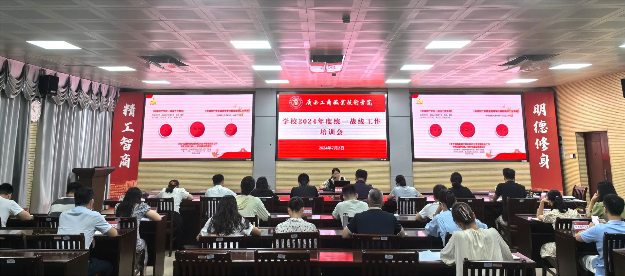 7月3日,學(xué)校在鵬飛校區(qū)召開2024年統(tǒng)一戰(zhàn)線工作培訓(xùn)會,黨委統(tǒng)戰(zhàn)部部長李筱翎同志主持會議并作培訓(xùn)。學(xué)校各黨總支、各直屬黨支部統(tǒng)戰(zhàn)委員、黨委統(tǒng)戰(zhàn)部全體人員參加會議。