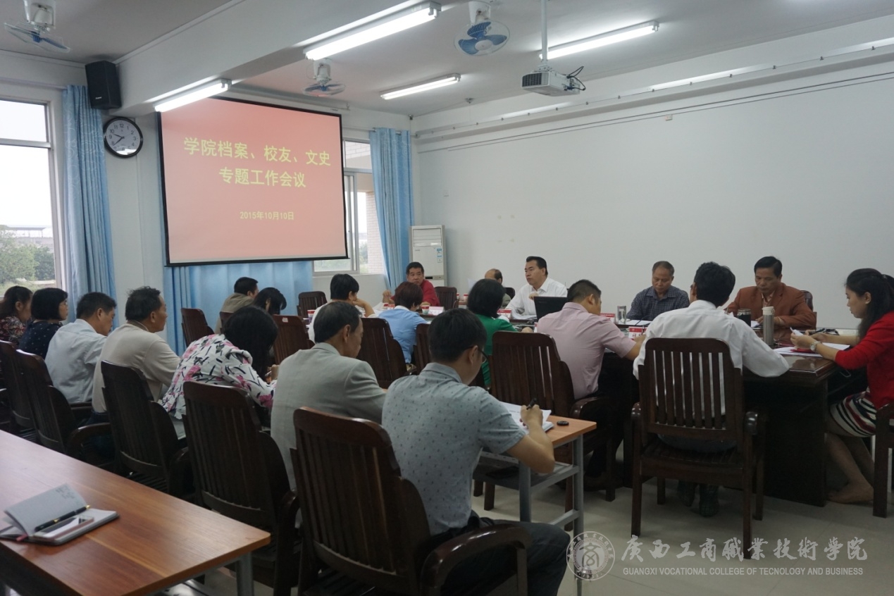 2015年10月10日上午,我院在校本部教學(xué)樓2109會(huì)議室召開(kāi)了學(xué)院檔案、校友、文史專(zhuān)題工作會(huì)議。此次會(huì)議由陳杰院長(zhǎng)主持,學(xué)院辦公室、教務(wù)處、學(xué)工處、系部、圖書(shū)館等部門(mén)負(fù)責(zé)人以及有關(guān)工作人員參加了此次會(huì)議。
