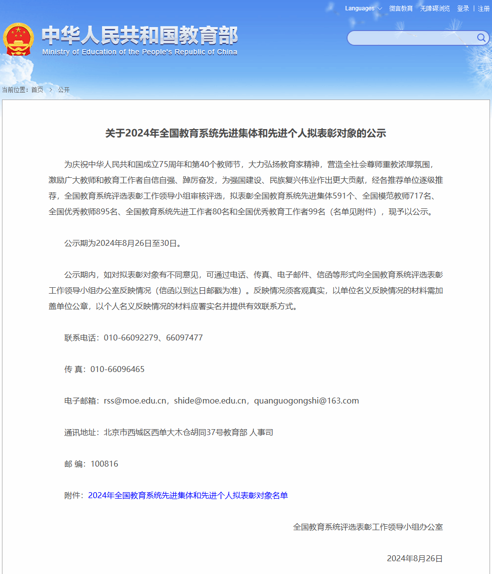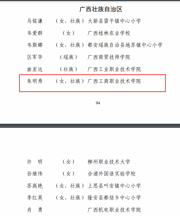 為慶祝中華人民共和國成立75周年和第40個(gè)教師節(jié),近日,教育部發(fā)布《關(guān)于2024年全國教育系統(tǒng)先進(jìn)集體和先進(jìn)個(gè)人擬表彰對(duì)象的公示》,其中包括全國教育系統(tǒng)先進(jìn)集體、全國模范教師、全國優(yōu)秀教師、全國教育系統(tǒng)先進(jìn)工作者、全國優(yōu)秀教育工作者五項(xiàng),我校信息與設(shè)計(jì)學(xué)院教師朱明秀獲評(píng)全國優(yōu)秀教師,這是我校教師首次獲此榮譽(yù)。