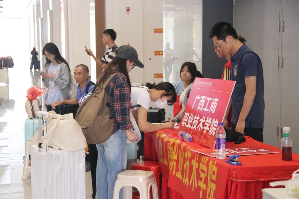為了確保每位新生都能順利報到,迎新日當(dāng)天,學(xué)校精心組織了由教師和學(xué)生志愿者組成的迎接團隊。他們早早守候在各大火車站、汽車站和地鐵站,手持“廣西工商職業(yè)技術(shù)學(xué)院”的醒目標(biāo)識牌,以最溫暖的笑容和最真摯的熱情,迎接每一位遠道而來的新生及家長,引導(dǎo)他們前往學(xué)校。