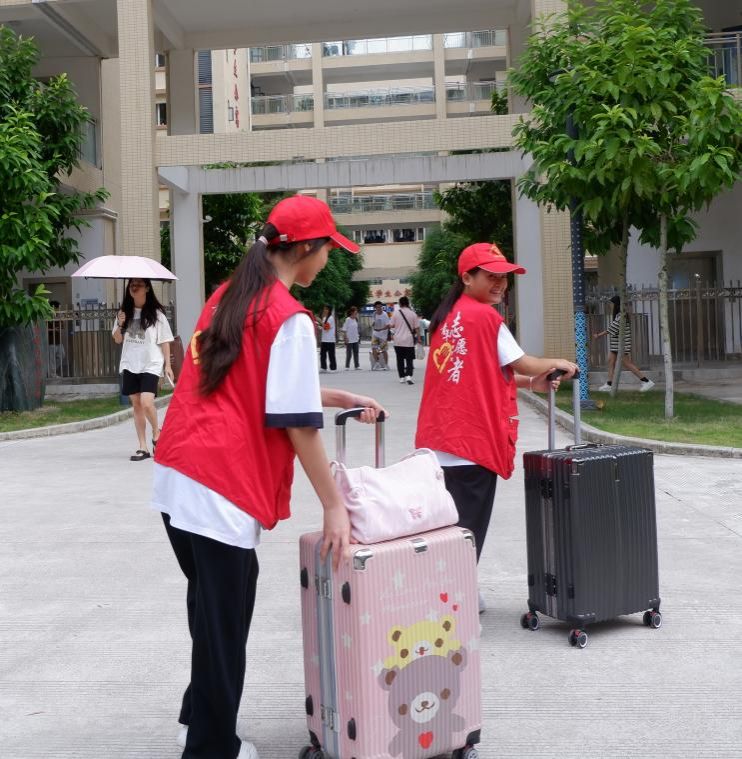 (志愿者們幫助新生搬運行李)