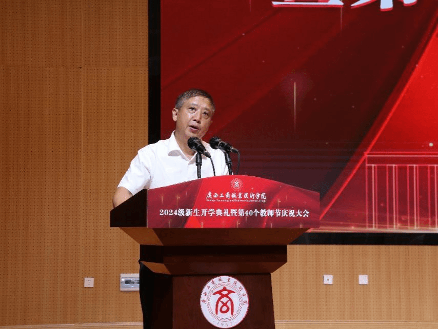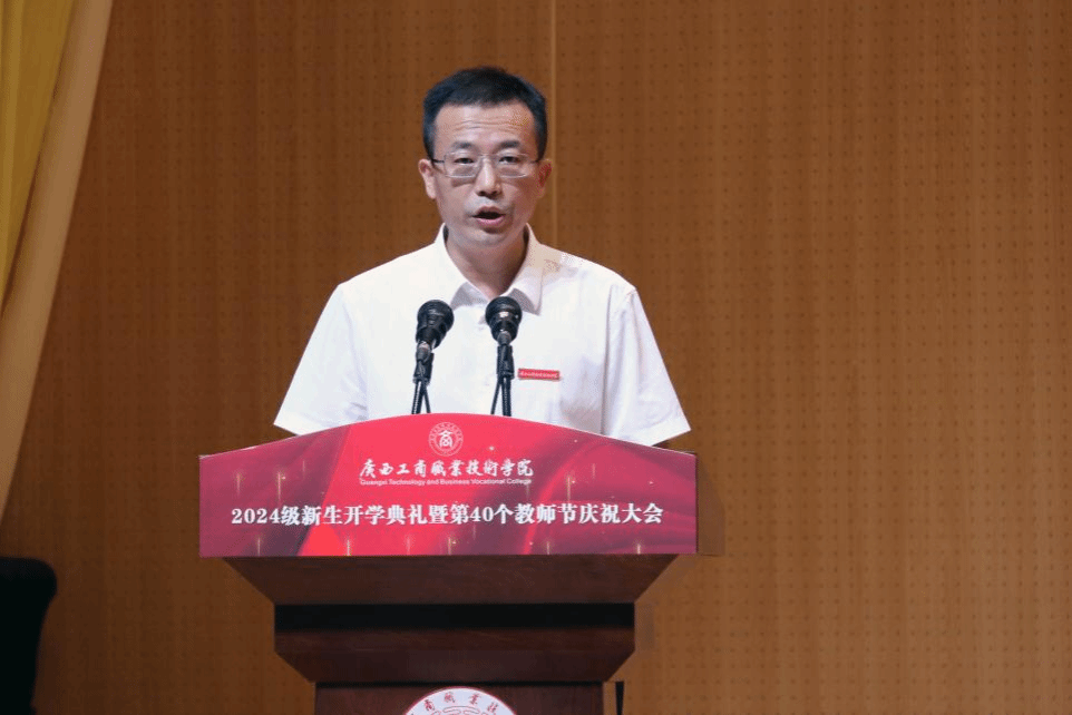 學(xué)校黨委副書記、校長劉進在大會上致辭,向8300多名2024級新生表示熱烈的歡迎,向全體教職工致以節(jié)日的問候和崇高的敬意。他勉勵同學(xué)們一要堅定理想信念,爭做信念如磐的有志青年,勇?lián)鐣?zé)任,做信仰堅定的接班人;二要勤奮學(xué)習(xí),爭做本領(lǐng)過硬的有識青年,不斷拓寬知識領(lǐng)域,積極參加豐富多彩的校園活動,努力成為學(xué)有所長、業(yè)有所專、技有所精的廣商院人;三要敢于開拓創(chuàng)新,爭做篤行實干的有為青年,勇于迎接新挑戰(zhàn),善于開辟新領(lǐng)域,心有大我,在協(xié)作奮進中彰顯作為。