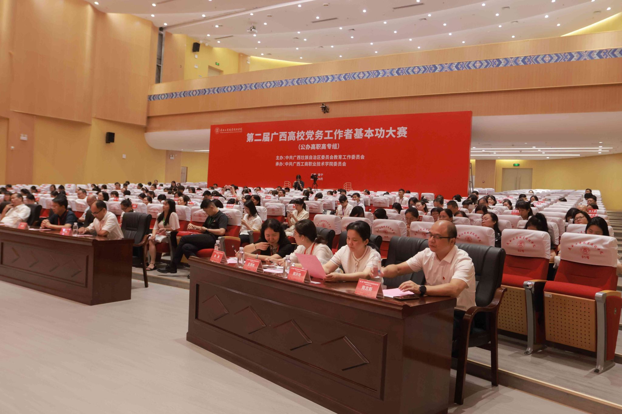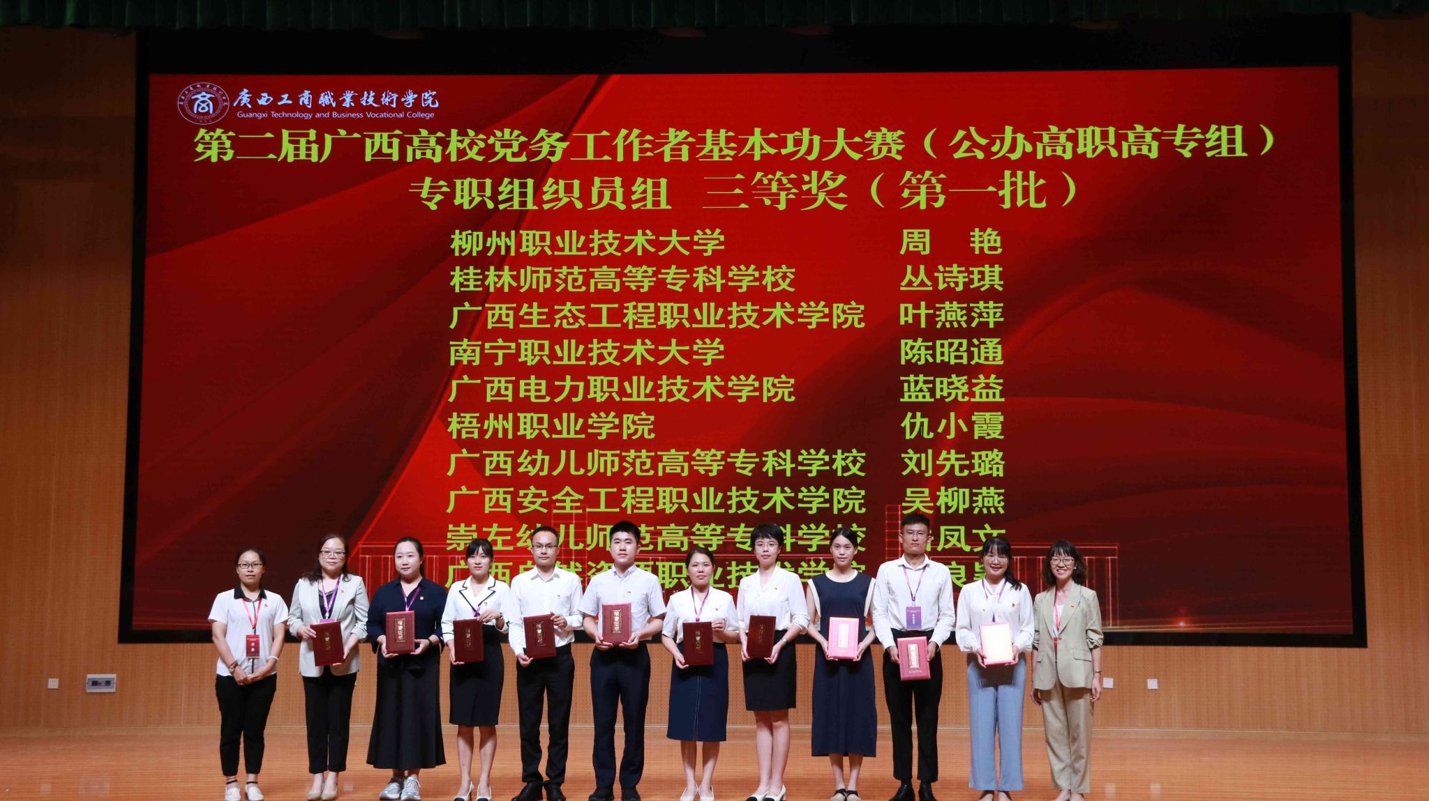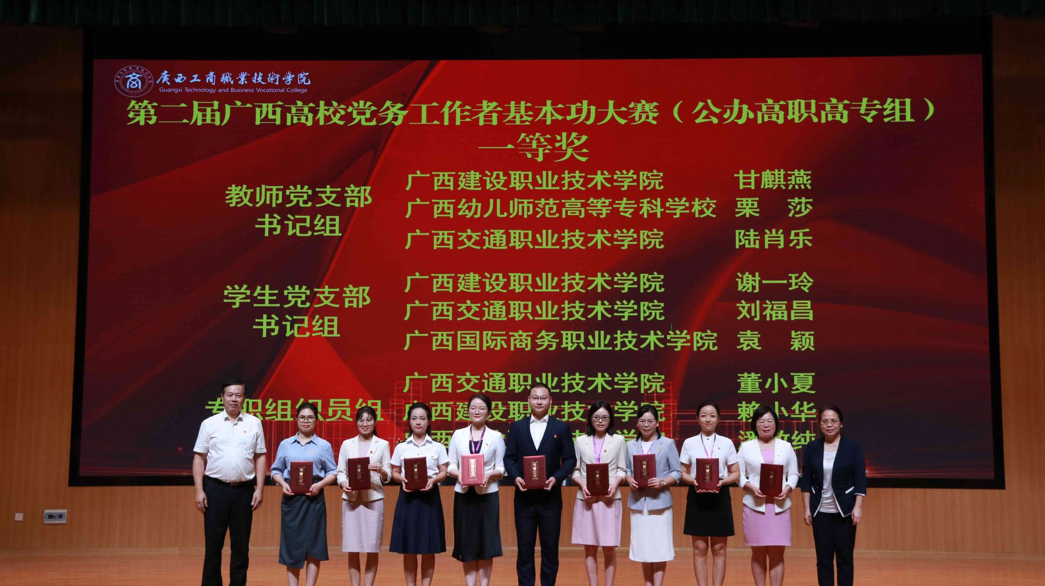 “創(chuàng)先爭優(yōu)”練尖兵,“比學趕超”展風采。9月19日至20日,由自治區(qū)黨委教育工委主辦、我校承辦的第二屆廣西高校黨務工作者基本功大賽(公辦高職高專組)在學校武鳴校區(qū)舉辦,來自全區(qū)29所高職高專院校的82名黨務工作者同臺競技、角逐爭魁。學校黨委書記李維,自治區(qū)黨委教育工委組織部部長、一級調研員唐春燕出席大賽閉幕式。