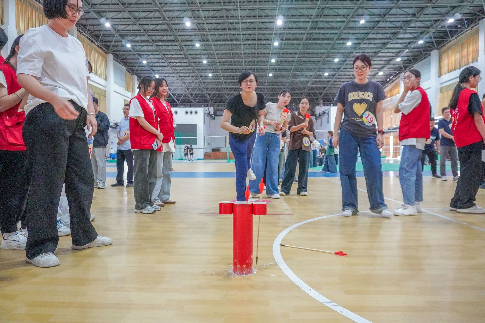 投壺,作為中國古代傳統(tǒng)游戲之一,不僅考驗(yàn)著參與者的技巧與專注力,更蘊(yùn)含著深厚的文化底蘊(yùn)。在比賽現(xiàn)場,教職工們紛紛化身“投壺高手”,他們或站或蹲,仔細(xì)瞄準(zhǔn),力求將箭矢準(zhǔn)確投入壺中。每一次成功的投壺都引來了觀眾的陣陣掌聲與歡呼,而偶爾的失誤也引發(fā)了大家善意的笑聲,現(xiàn)場氛圍輕松愉快。這次比賽不僅讓他們體驗(yàn)到了投壺的樂趣,還增進(jìn)了與同事之間的交流與了解。