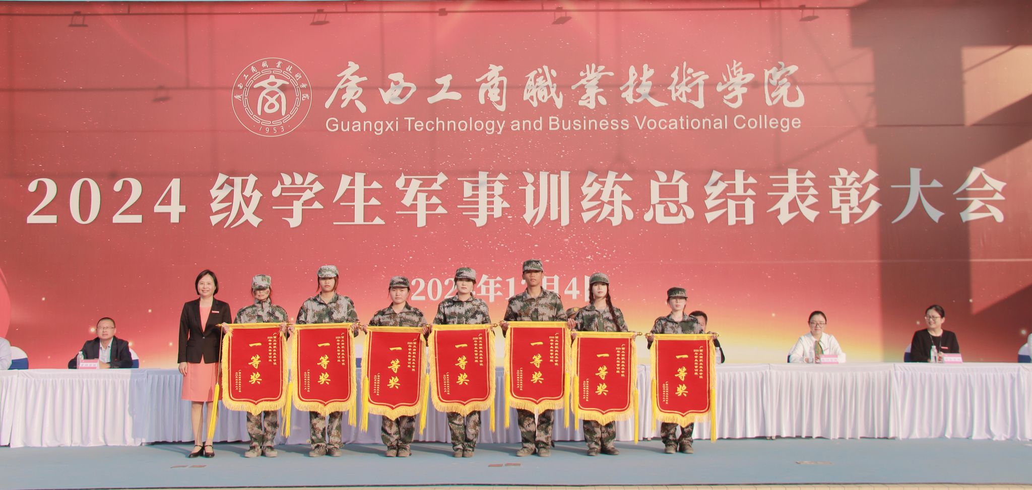 迷彩戎裝,英姿颯爽。12月4日,學(xué)校在武鳴校區(qū)召開2024級新生軍事訓(xùn)練總結(jié)表彰大會。學(xué)校黨委副書記、紀委書記韋云鳳,良慶區(qū)人民武裝部軍事科科長鄭先國同志,教務(wù)處、黨委學(xué)生工作部、后勤管理處、會計學(xué)院、管理學(xué)院、財金學(xué)院、經(jīng)貿(mào)學(xué)院、糧油康旅學(xué)院相關(guān)領(lǐng)導(dǎo),武鳴校區(qū)2024級全體參訓(xùn)學(xué)生及輔導(dǎo)員、軍訓(xùn)教官以及黨委學(xué)生工作部相關(guān)人員參加大會。
