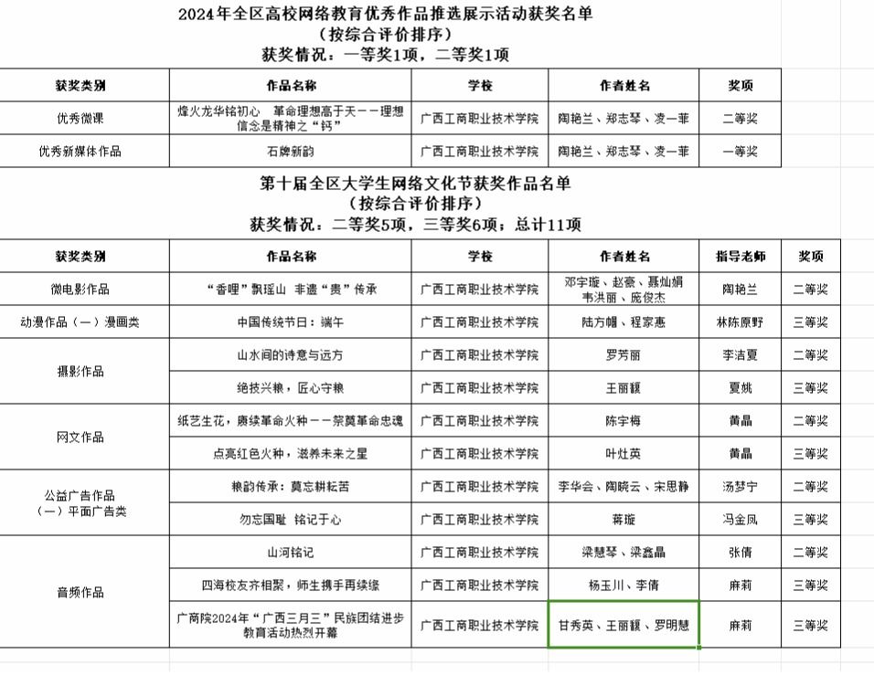 近日,自治區(qū)教育廳和自治區(qū)黨委網(wǎng)信辦公布第十屆全區(qū)大學(xué)生網(wǎng)絡(luò)文化節(jié)和2024年全區(qū)高校網(wǎng)絡(luò)教育優(yōu)秀作品推選展示活動獲獎名單,我校在優(yōu)秀微課、優(yōu)秀新媒體作品、微電影、漫畫、攝影、網(wǎng)文、公益廣告、音頻等8類作品的征集中榮獲13個獎項,其中一等獎1個、二等獎6個、三等獎6個。