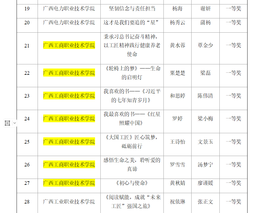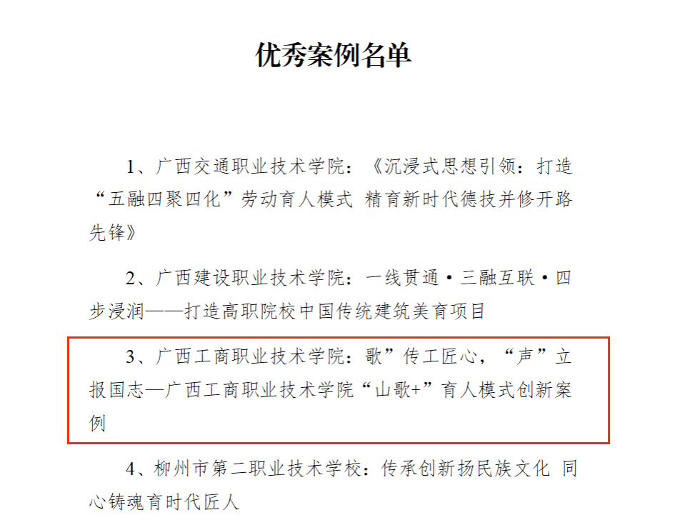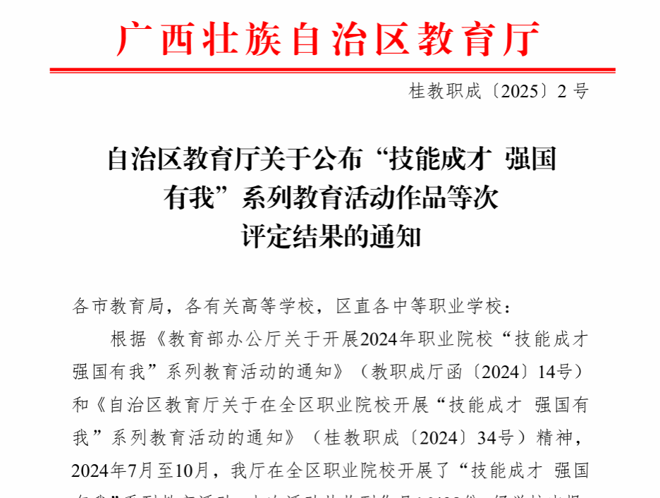 近日,自治區(qū)教育廳公布了2024年全區(qū)“技能成才 強(qiáng)國(guó)有我”系列教育活動(dòng)作品等次評(píng)定結(jié)果,我校在此次活動(dòng)中表現(xiàn)優(yōu)異,共推薦319項(xiàng)作品和2個(gè)典型案例入圍區(qū)賽。經(jīng)過激烈角逐,我校斬獲佳績(jī):34項(xiàng)作品榮獲一等獎(jiǎng),68項(xiàng)作品榮獲二等獎(jiǎng),105項(xiàng)作品榮獲三等獎(jiǎng),《“歌”傳工匠心,“聲”立報(bào)國(guó)志——廣西工商職業(yè)技術(shù)學(xué)院“山歌+”育人模式創(chuàng)新案例》榮獲優(yōu)秀典型案例。此外,學(xué)校還榮獲優(yōu)秀組織獎(jiǎng),充分展現(xiàn)了我校在技能教育和人才培養(yǎng)方面的成果。