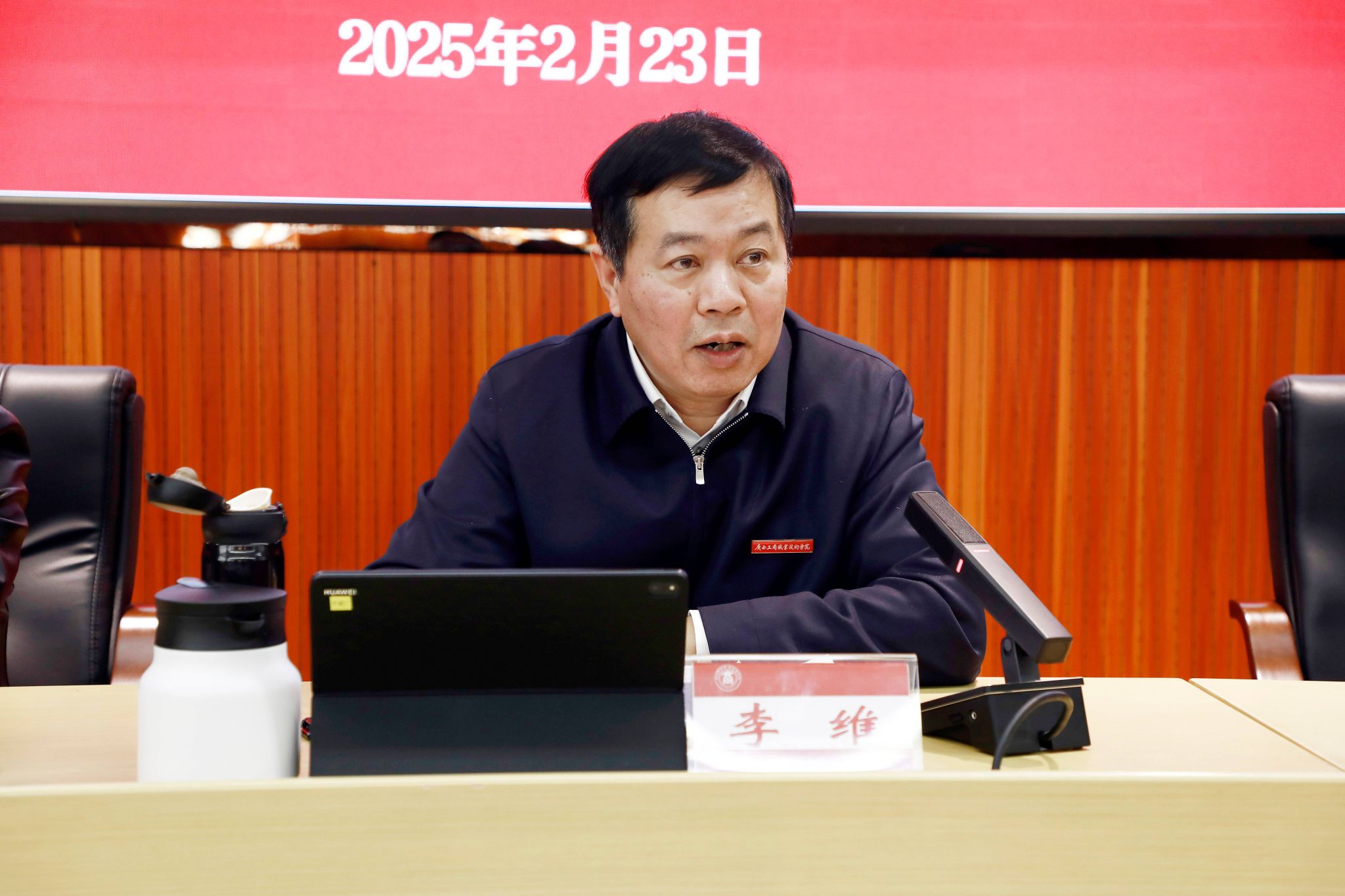 劉進(jìn)校長在報(bào)告中指出,寒假期間,學(xué)校各部門、單位堅(jiān)守崗位、協(xié)同發(fā)力,持續(xù)推動落實(shí)上級和學(xué)校黨委部署的各項(xiàng)工作任務(wù),做好學(xué)校正常運(yùn)轉(zhuǎn)各項(xiàng)保障工作,為新學(xué)期開好局、起好步打下堅(jiān)實(shí)基礎(chǔ)。他指出,2025年要抓好六個方面重點(diǎn)工作,一是以習(xí)近平新時(shí)代中國特色社會主義思想為根本遵循,堅(jiān)持和加強(qiáng)黨對學(xué)校工作的全面領(lǐng)導(dǎo)。二是圍繞落實(shí)立德樹人根本任務(wù),推動思想政治工作培根鑄魂。三是全面推進(jìn)新一輪“雙高”建設(shè),持續(xù)提升辦學(xué)水平和人才培養(yǎng)質(zhì)量。四是大力弘揚(yáng)教育家精神,持續(xù)強(qiáng)化新時(shí)代高水平教師隊(duì)伍建設(shè)。五是踐行大安全觀筑牢安全責(zé)任防線,全力維護(hù)校園安全穩(wěn)定。六是提升學(xué)校治理能力現(xiàn)代化建設(shè),提升師生獲得感幸福感。他還在會上報(bào)告了各部門、各單位2025年“為民辦實(shí)事”重點(diǎn)工作和標(biāo)志性成果,為各部門、各單位新一年工作指明了方向。