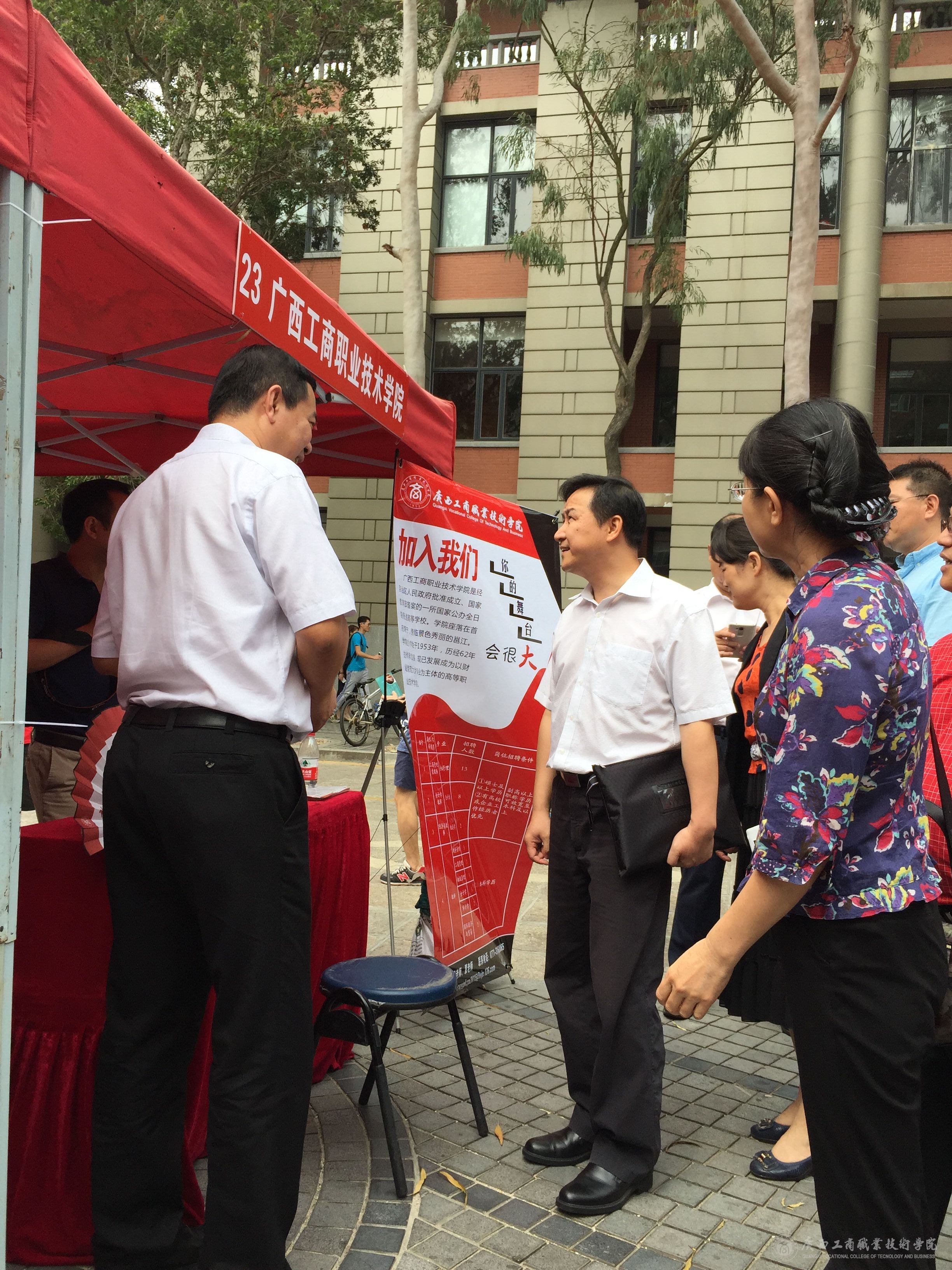招聘會(huì)期間,自治區(qū)黨委組織部部務(wù)委員、副巡視員曾凱同志到我校展位指導(dǎo)工作,向李維副院長(zhǎng)了解了招聘情況,稱(chēng)贊我院的展架設(shè)計(jì)和文化扇富有工商特色。
