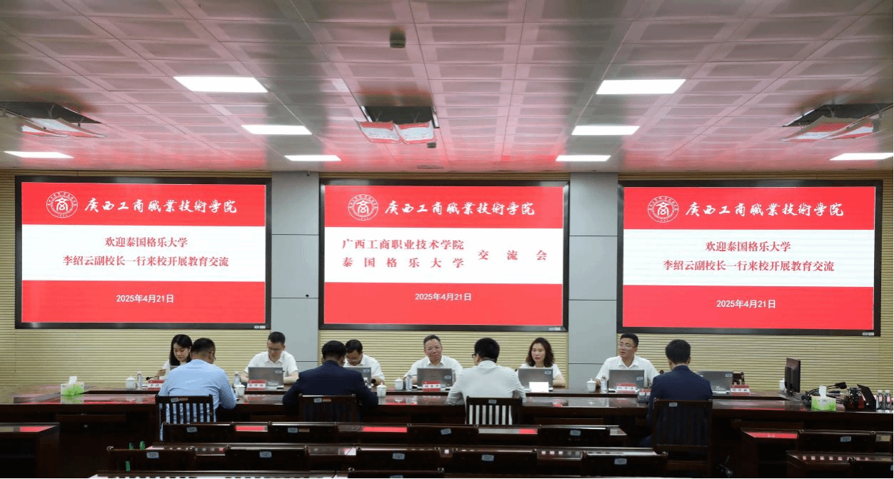 4月21日,泰國格樂大學到我校開展國際合作交流。學校副校長闕勇平,泰國格樂大學副校長李紹云出席會議。學校教務科研處(國際交流合作處)、糧油與管理學院、人工智能學院主要負責人,泰國格樂大學航空航天國際學院、國際交流處、廣西國際事務中心相關人員參加會議。
