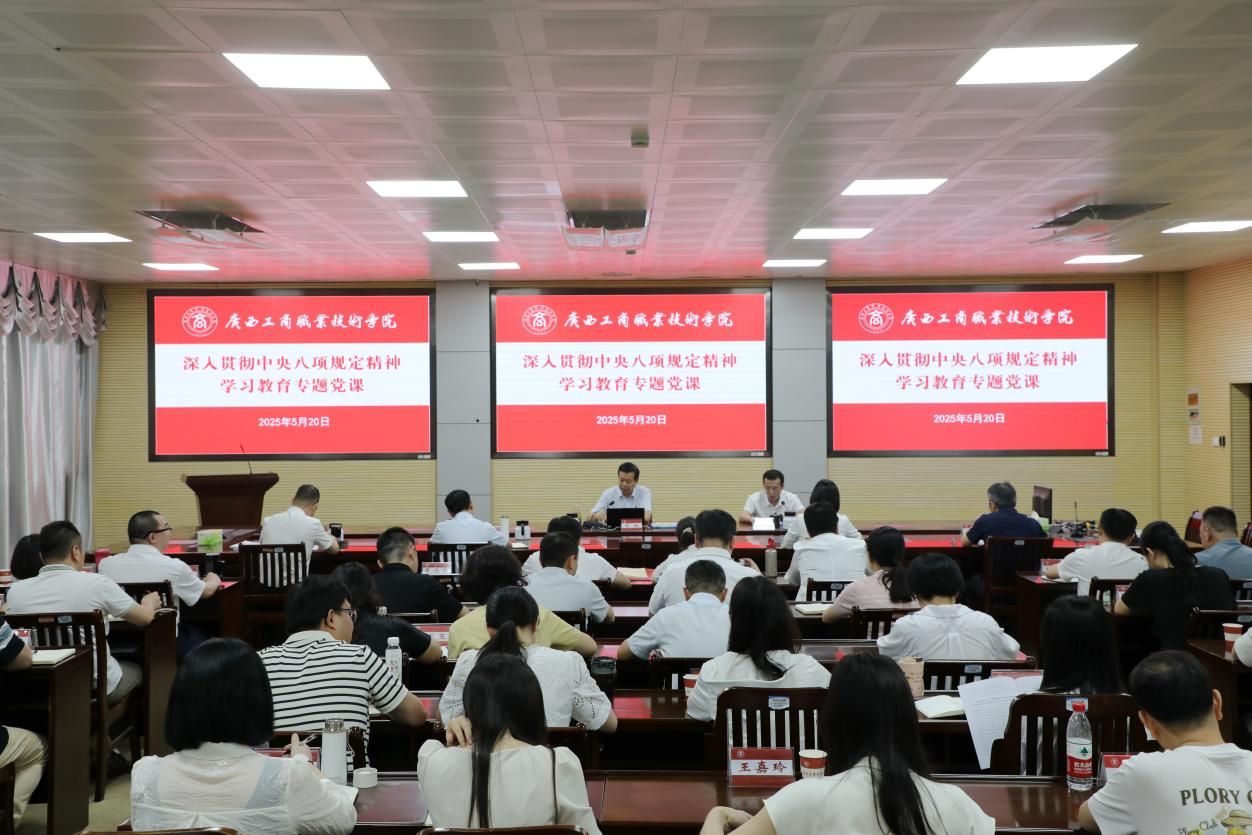 5月20日,學(xué)校在鵬飛校區(qū)開展深入貫徹中央八項規(guī)定精神學(xué)習(xí)教育專題黨課,學(xué)校黨委書記李維授課,引導(dǎo)黨員干部始終堅守思想防線和紀(jì)律底線。學(xué)校黨委副書記、校長劉進(jìn)主持會議并講話。