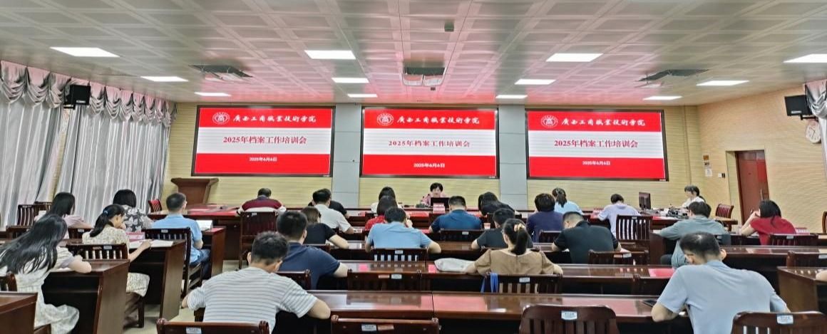 為貫徹落實(shí)全區(qū)檔案工作會(huì)議精神,進(jìn)一步加強(qiáng)和規(guī)范學(xué)校檔案管理工作,確保學(xué)校2024年度檔案材料歸檔工作順利開展,2025年6月6日,學(xué)校在鵬飛校區(qū)召開2025年檔案工作培訓(xùn)會(huì)議。學(xué)校各部門、各單位檔案工作分管領(lǐng)導(dǎo)及兼職檔案工作人員參加會(huì)議。會(huì)議由黨委辦公室(學(xué)院辦公室)副主任岑郁主持。