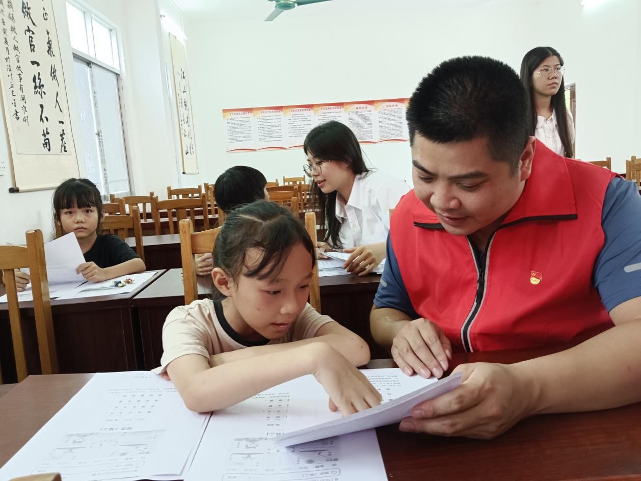 (鐘全與大學(xué)生暑期“三下鄉(xiāng)”團(tuán)隊(duì)開展“暑期課堂”)