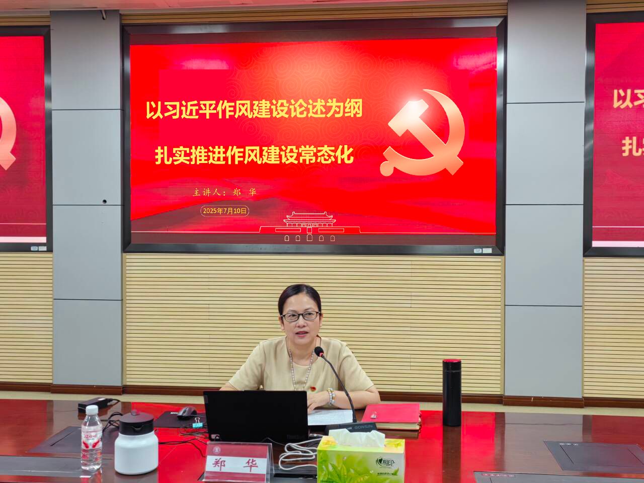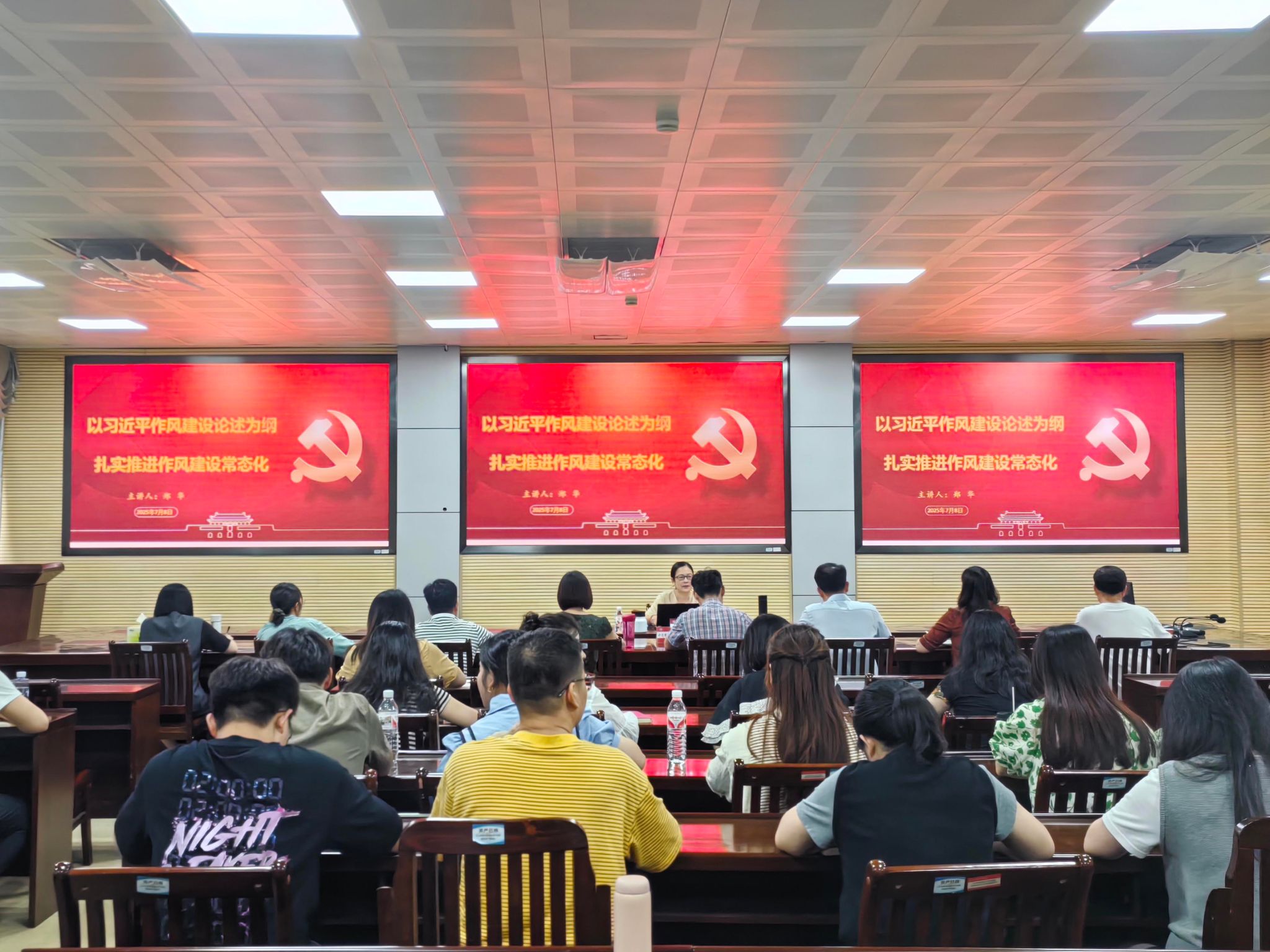 7月8日,學(xué)校副校長(zhǎng)鄭華到基層黨組織開展深入貫徹中央八項(xiàng)規(guī)定精神學(xué)習(xí)教育專題黨課,智慧設(shè)計(jì)學(xué)院黨總支、計(jì)劃財(cái)務(wù)處黨支部、國有資產(chǎn)管理處黨支部全體黨員參加活動(dòng)。