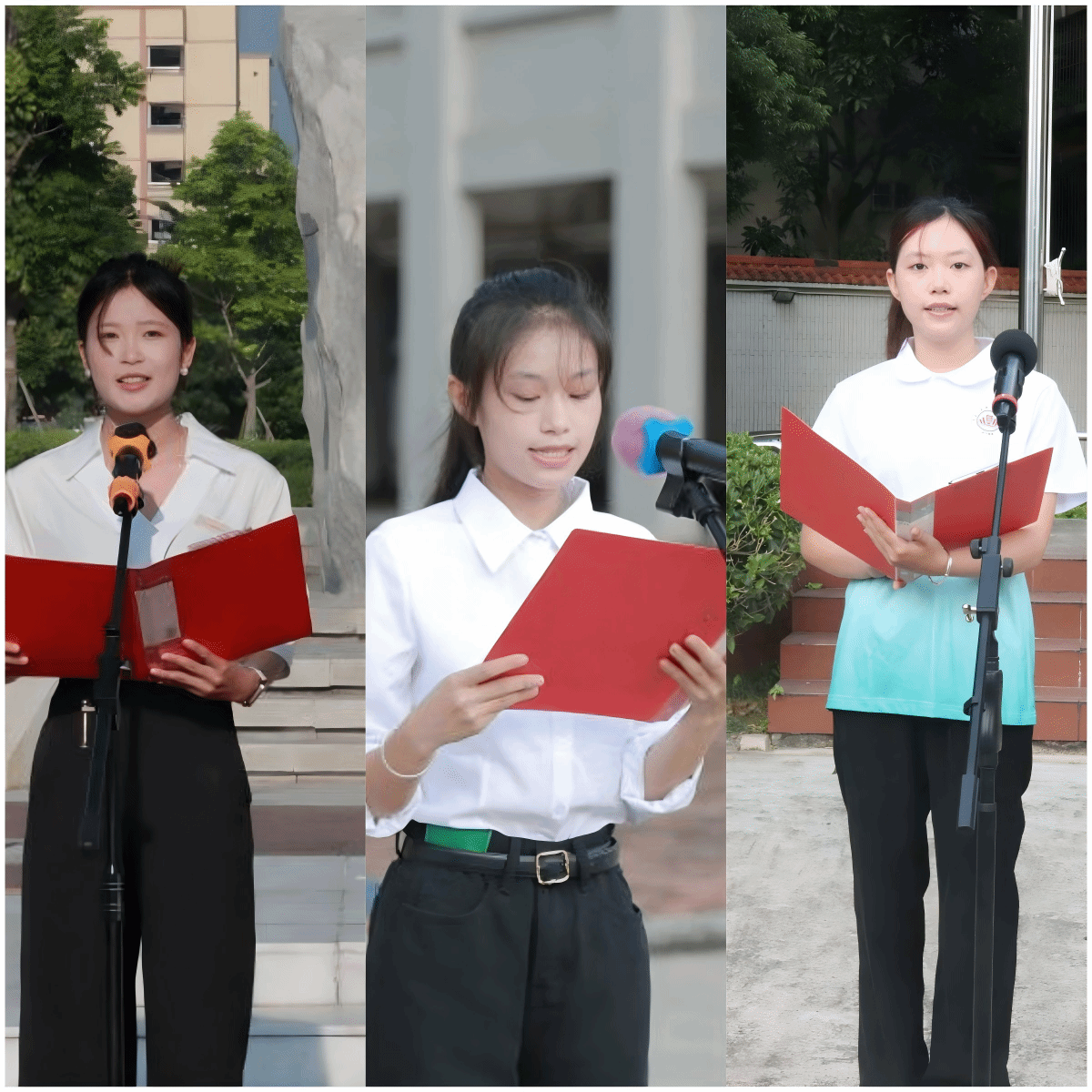 教師代表陳雯、梁納、湯夢寧上臺發(fā)言,她們希望在新學(xué)期同學(xué)們能做到勇于嘗試,積極參加各類社團(tuán)活動、創(chuàng)新項(xiàng)目和實(shí)踐競賽,主動走出舒適區(qū),在真實(shí)挑戰(zhàn)中重新認(rèn)識自己。以更加飽滿的熱情投入學(xué)習(xí)與實(shí)踐,不斷提升自身能力,錘煉過硬本領(lǐng),將“請黨放心,強(qiáng)國有我”的誓言轉(zhuǎn)化為實(shí)際行動。