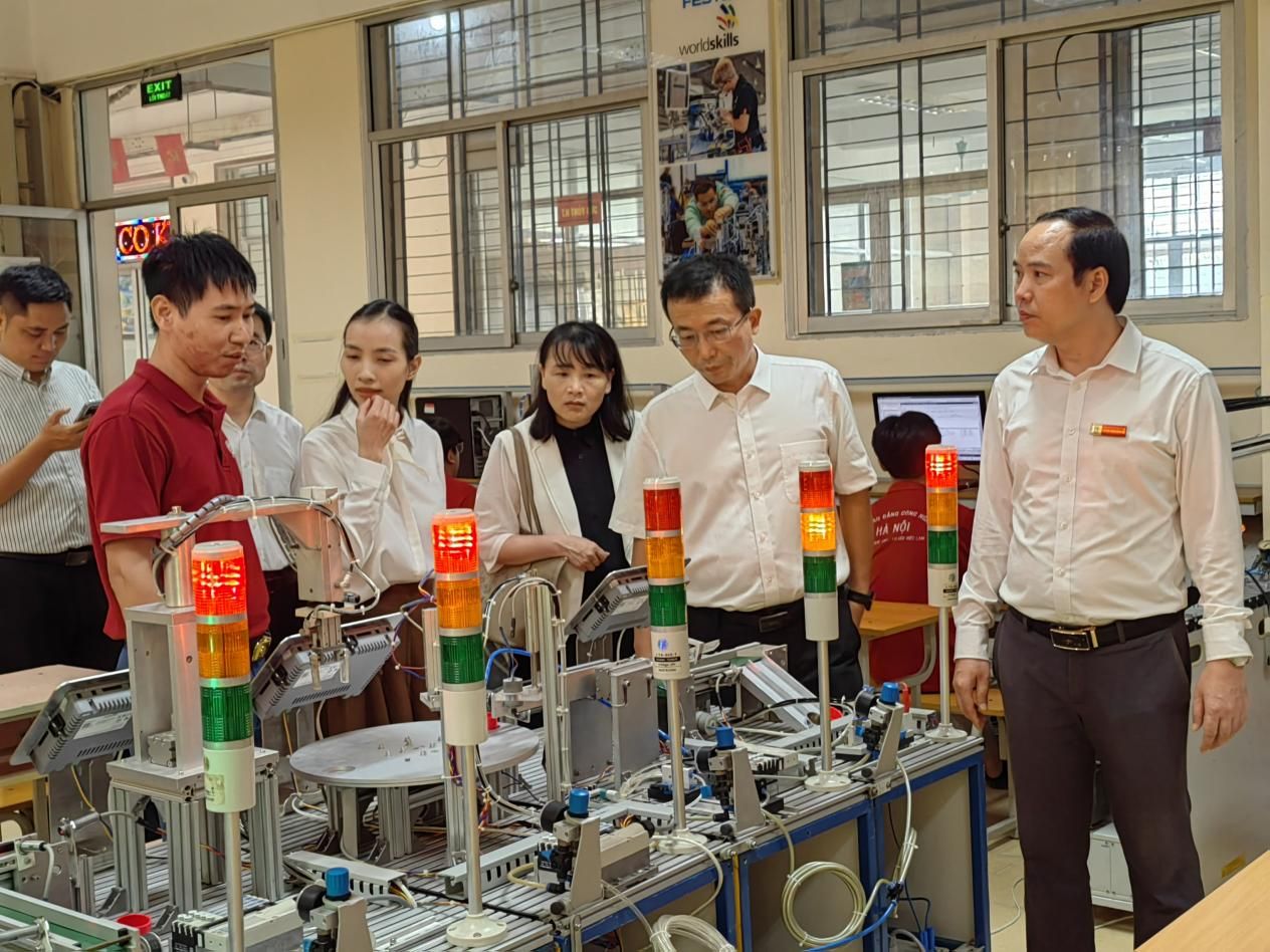 在河內(nèi)高科技學(xué)院,代表團受到校長范春慶、副校長黎名光等校方代表的熱情接待。雙方通過視頻展示各自辦學(xué)特色,并就職業(yè)教育創(chuàng)新發(fā)展、師生交流項目、“中文+專業(yè)技能”課程開發(fā)、共建中國-東盟現(xiàn)代工匠學(xué)院等議題進行了深入研討。為進一步深化合作,推動中越院校在教育教學(xué)經(jīng)驗共享、人才聯(lián)合培養(yǎng)等方面協(xié)同發(fā)展,雙方正式簽署合作備忘錄。座談會后,代表團參觀了該校校園及實驗實訓(xùn)基地,深入了解其教學(xué)設(shè)施與實踐教學(xué)模式。