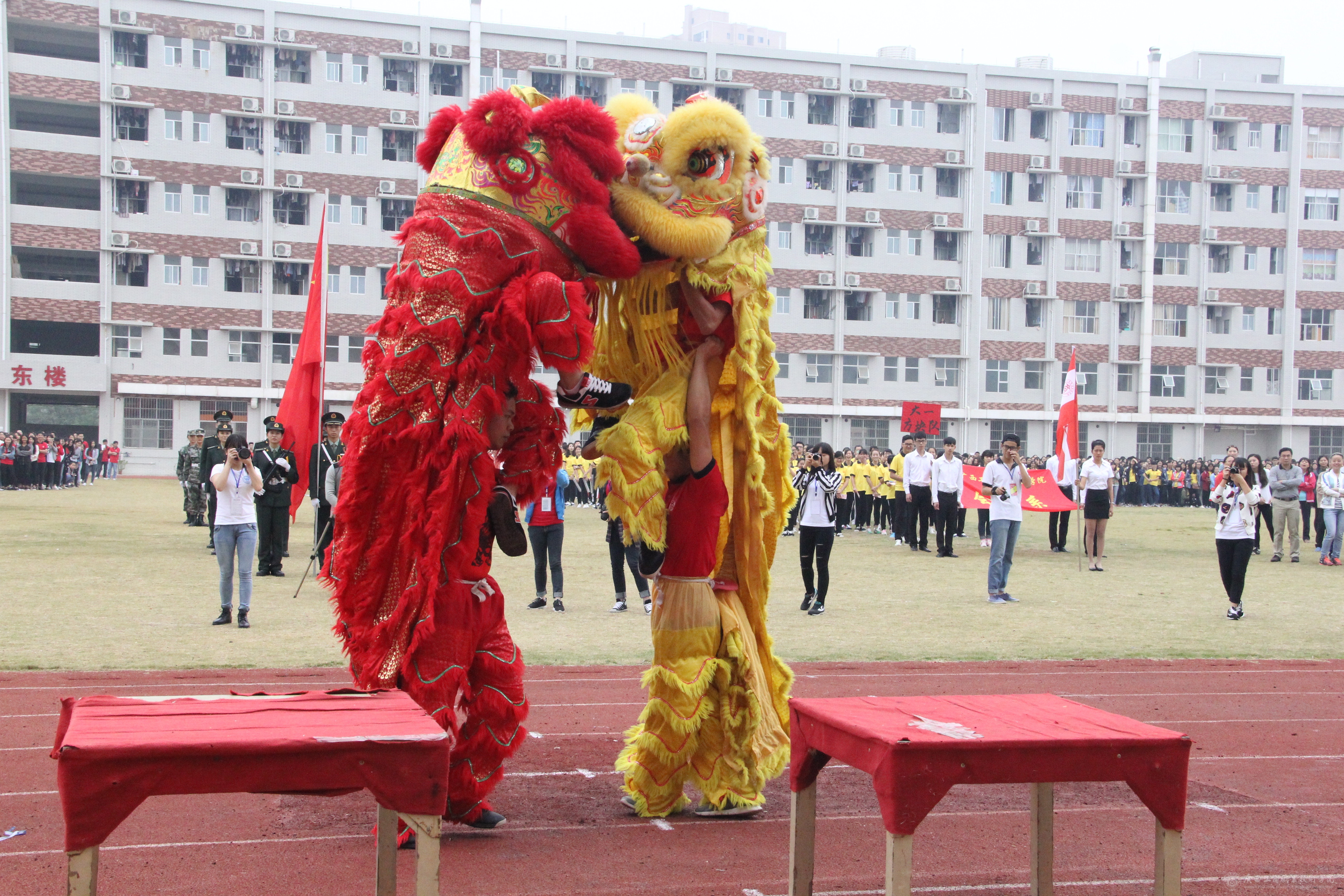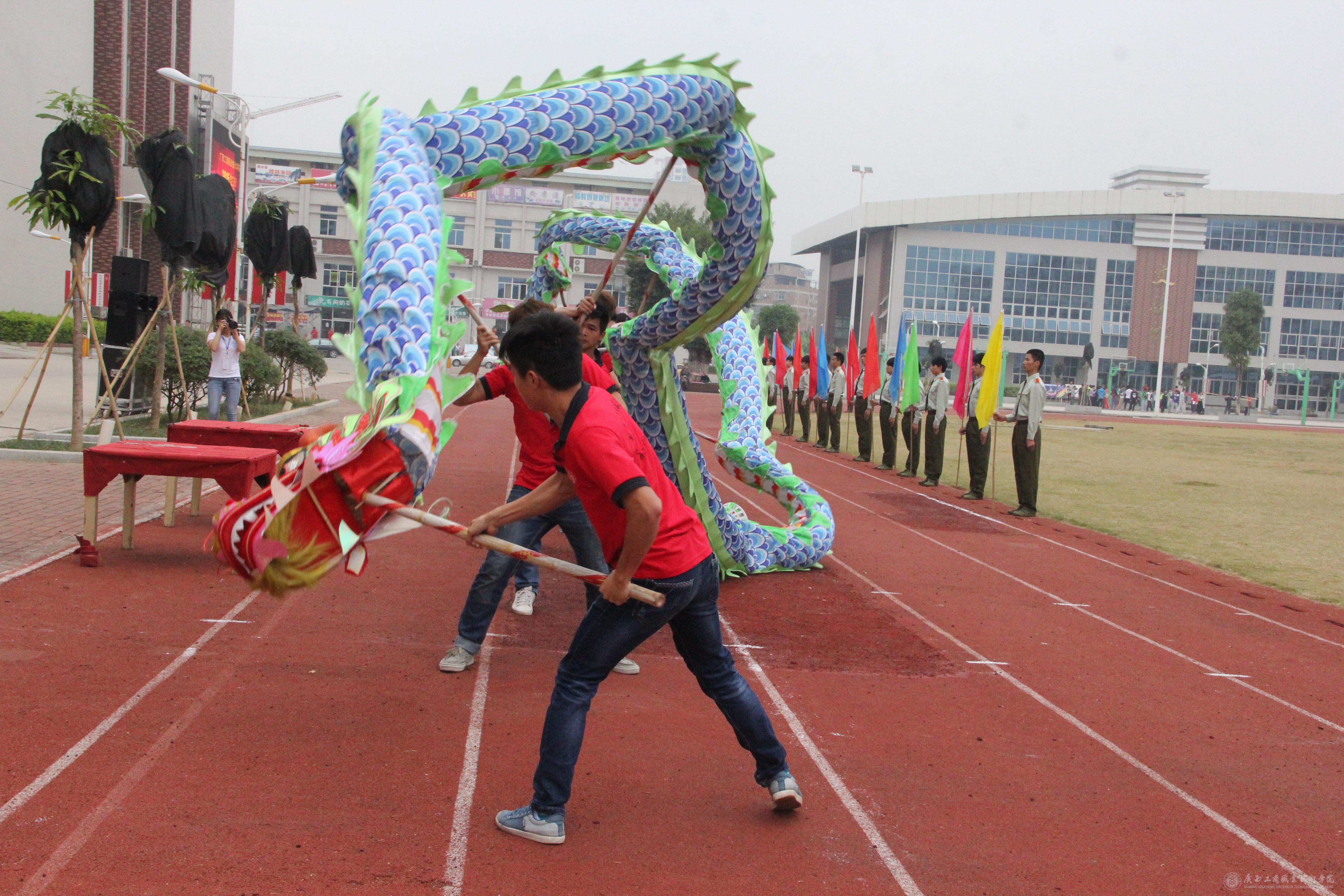 據(jù)悉,此次運動會是我院新校區(qū)建設(shè)以來舉辦的第四次校運會。學(xué)院武術(shù)協(xié)會還為大家獻上舞龍、舞獅表演。這場精彩絕倫的表演,再次激起了運動員的參賽熱情,也令現(xiàn)場觀眾贊不絕口。