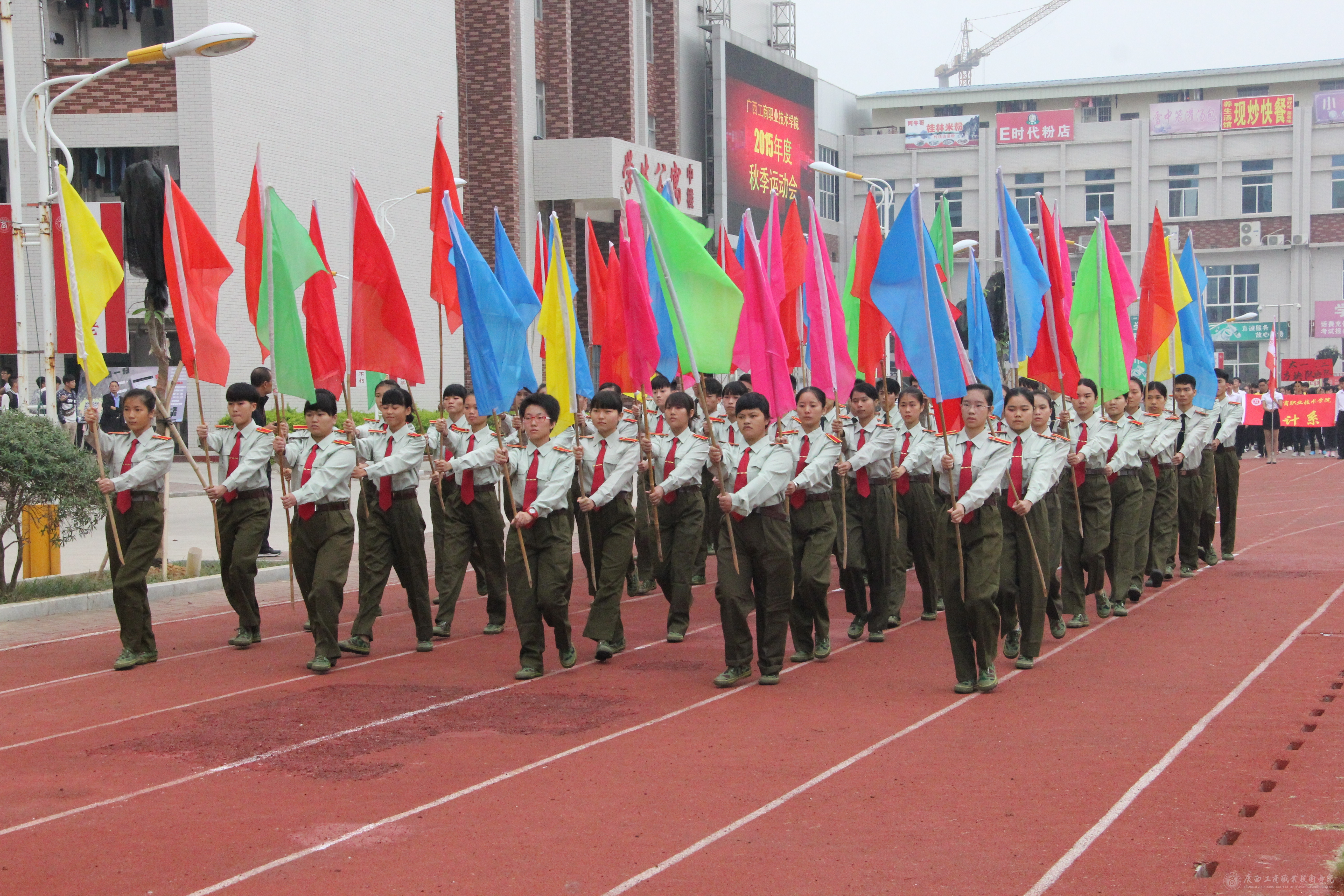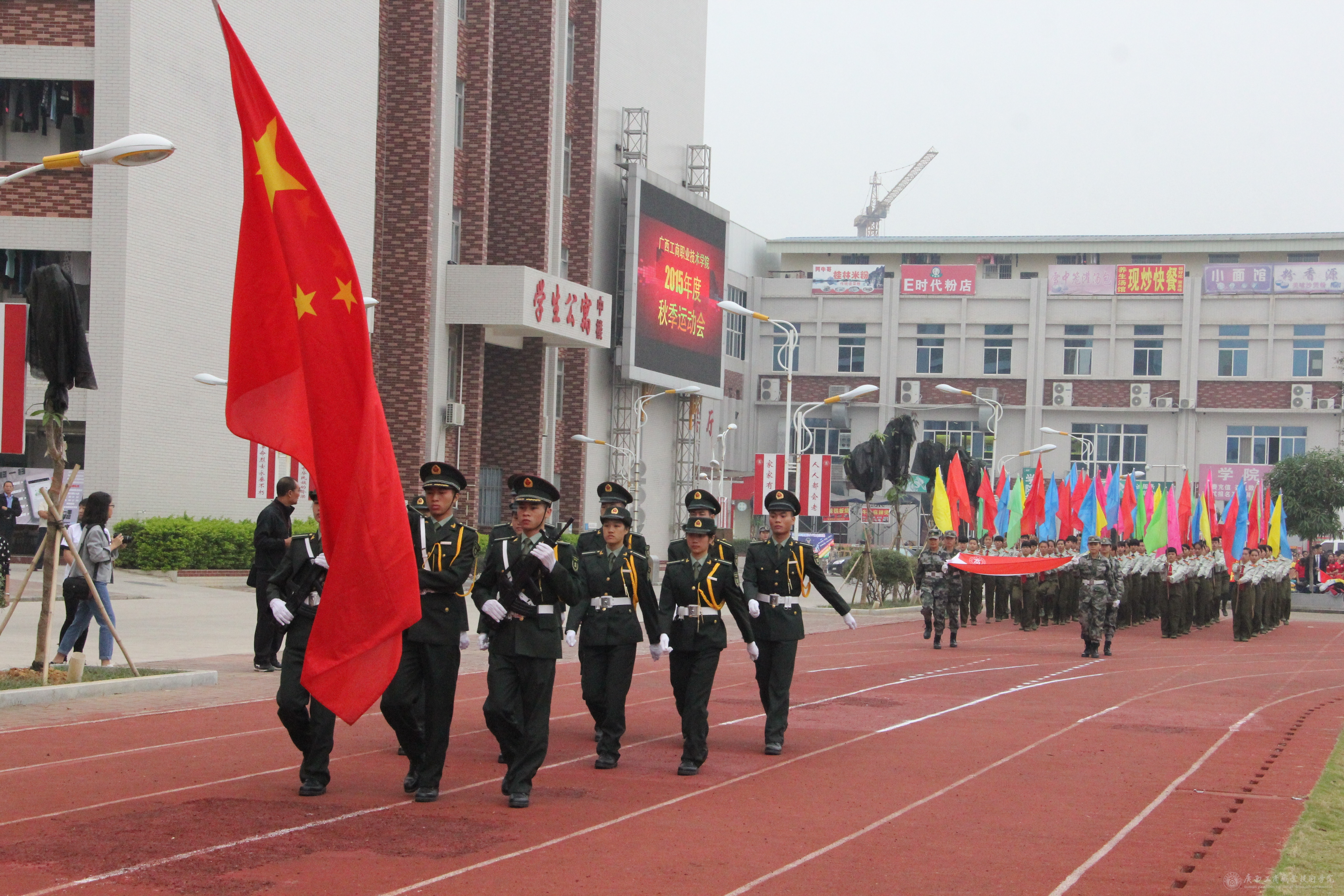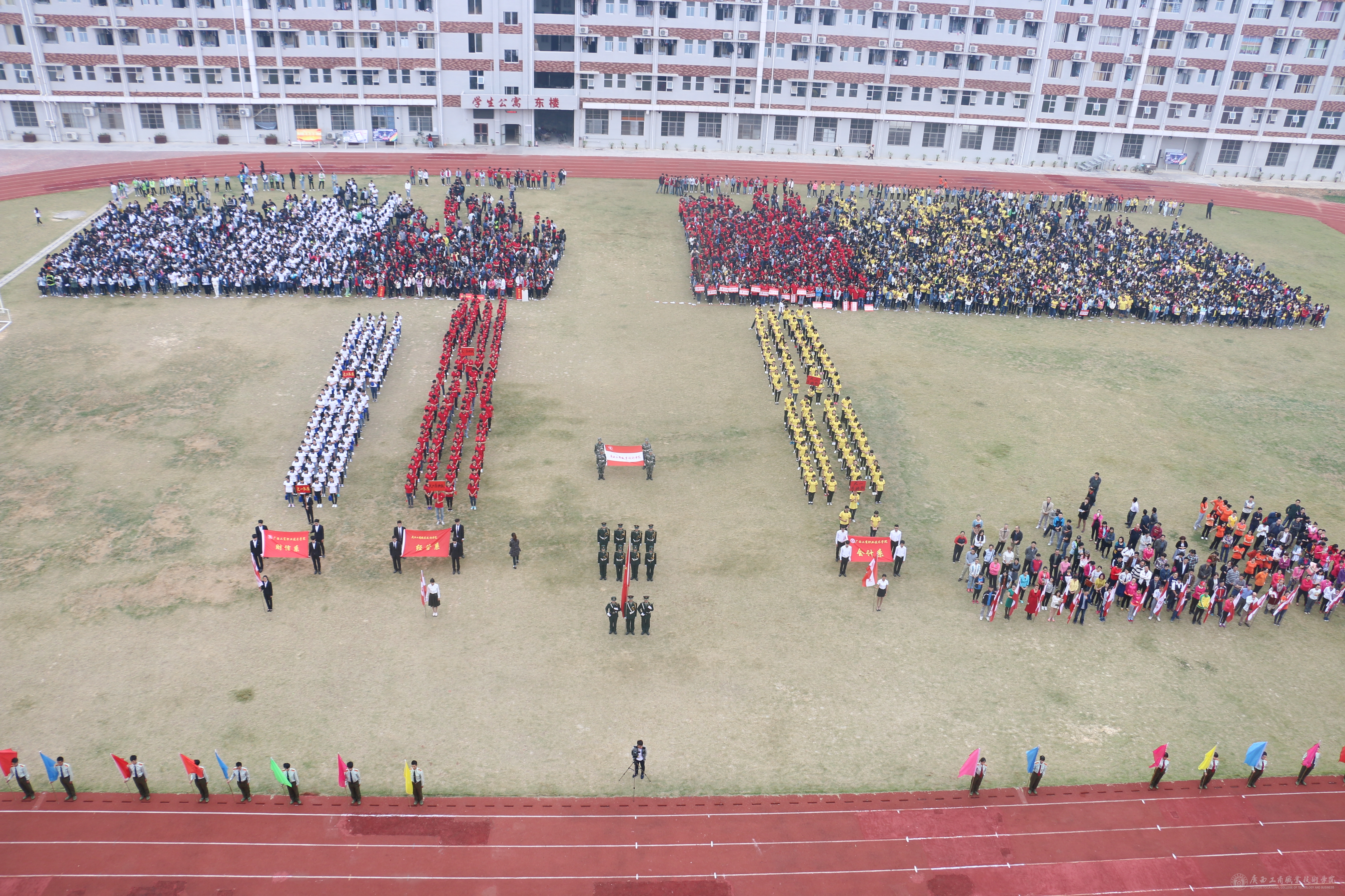 最后,學(xué)院黨委書記覃武云同志莊嚴宣布:廣西工商職業(yè)技術(shù)學(xué)院2015年度秋季運動會開幕!全場響起經(jīng)久不息的掌聲。