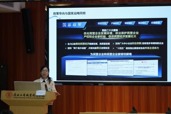 南寧師范大學(xué)創(chuàng)新創(chuàng)業(yè)學(xué)院副院長(zhǎng)韋良教授應(yīng)邀作主旨講座。韋良教授緊密結(jié)合輔導(dǎo)員職業(yè)發(fā)展路徑,系統(tǒng)闡述了如何將雙創(chuàng)指導(dǎo)與個(gè)人成長(zhǎng)深度融合。他提出,項(xiàng)目選題應(yīng)緊扣國(guó)家戰(zhàn)略與地方特色,倡導(dǎo)“真做實(shí)干”,推動(dòng)項(xiàng)目實(shí)體化運(yùn)作與知識(shí)產(chǎn)權(quán)布局;在指導(dǎo)策略上,需善用輔導(dǎo)員貼近學(xué)生的優(yōu)勢(shì),挖掘整合資源,構(gòu)建跨學(xué)科指導(dǎo)團(tuán)隊(duì),并注重通過(guò)賽事切實(shí)促進(jìn)學(xué)生綜合能力發(fā)展與生涯規(guī)劃。他的分享為輔導(dǎo)員們提供了從理念更新到實(shí)踐方法的系統(tǒng)性指引。