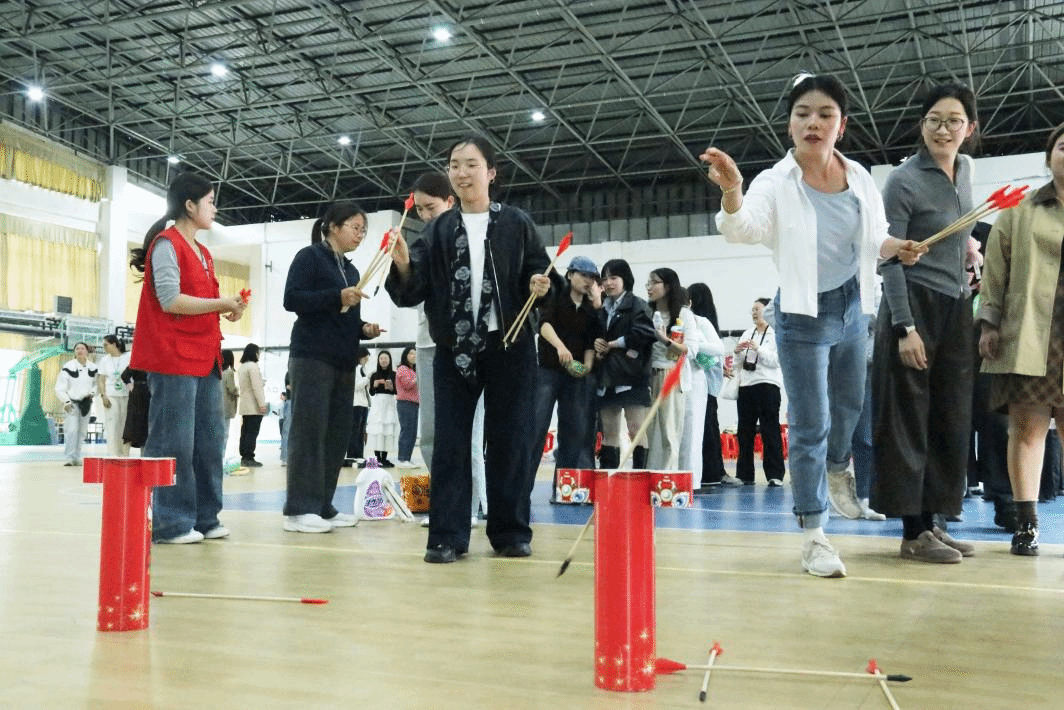 活動現(xiàn)場洋溢著溫馨歡樂的氛圍,學校結(jié)合實際精心為女教職工設置了投壺、套圈、擲飛鏢等項目,女教職工們熱情高漲,紛紛踴躍參與到各個游園項目當中,在輕松愉快的氛圍中卸下工作的疲憊,各顯身手,展現(xiàn)出課堂之外的別樣風采。