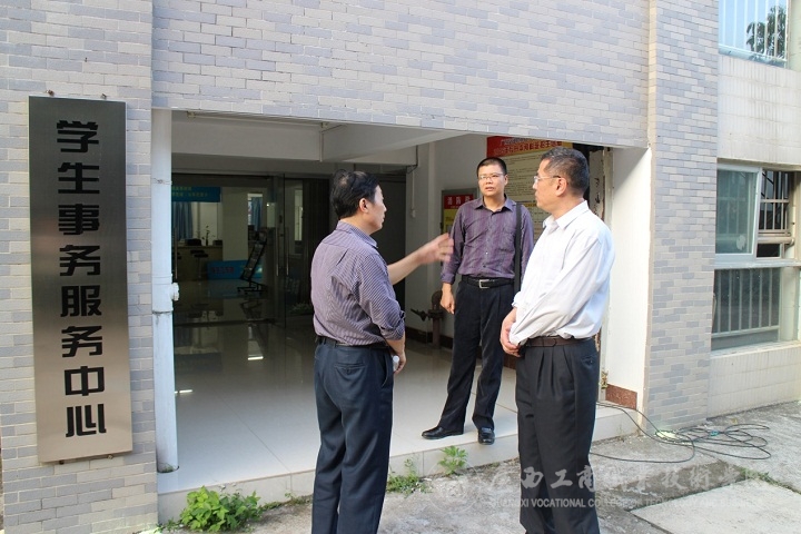 賽后,在莫躍寧處長的帶領(lǐng)下,實(shí)地參觀了廣西交通職業(yè)技術(shù)學(xué)院的四塘校區(qū)的沙盤模型、宿舍建設(shè)、學(xué)生事務(wù)服務(wù)中心等,并就本次競賽的組織和實(shí)施、輔導(dǎo)員(班主任)服務(wù)與管理、宿舍管理、一站式服務(wù)、學(xué)工建設(shè)工作等問題進(jìn)行了深入交流。