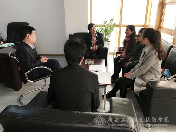 為了深化校企合作,加強我校學(xué)生頂崗實習(xí)過程管理,掌握學(xué)生頂崗實習(xí)狀況及企業(yè)對人才的需求。2015年12月22日上午,由教務(wù)科研處副處長謝偉燕老師領(lǐng)隊,經(jīng)管系就學(xué)副主任唐燕雯老師、經(jīng)管系就業(yè)秘書何麗瑩老師、財信系就業(yè)秘書莫凱淳老師等一行4人走訪了廣州多迪網(wǎng)絡(luò)科技有限公司南寧分公司、泰康人壽保險股份有限公司南寧分支公司2家企業(yè),檢查看望了學(xué)院2013級11名正在企業(yè)頂崗實習(xí)的學(xué)生。