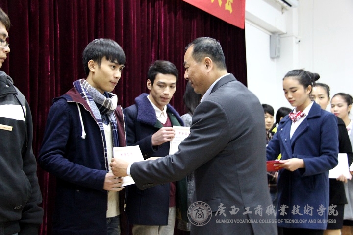 2015年12月29日19:20,我院在校本部2145報(bào)告廳召開了2014-2015年先進(jìn)集體、先進(jìn)個(gè)人表彰大會(huì)。學(xué)院黨委副書記、紀(jì)委書記蒙啟成出席并講話。參加會(huì)議的還有黨委學(xué)生工作部、學(xué)工處處長付光以及教務(wù)處、院團(tuán)委、公共部、社科部、各系主任、副主任、輔導(dǎo)員、各班學(xué)生等。大會(huì)由黨委學(xué)生工作部副部長張居設(shè)主持。