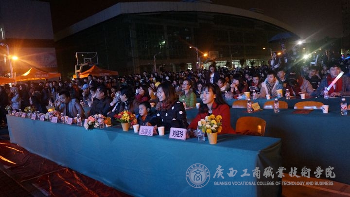為了迎接2016新的一年,展現(xiàn)當(dāng)代大學(xué)生的風(fēng)采與熱情,2015年12月30日晚7時,廣西工商職業(yè)技術(shù)學(xué)院經(jīng)管系“暢想商院?舞動經(jīng)管”2016元旦晚會在校本部LED大屏幕下隆重舉行。學(xué)院黨委副書記、紀委書記蒙啟成、黨委工作部部長、學(xué)生工作處付光處長 、經(jīng)管系譚波主任、社科部劉萬英主任、學(xué)生工作處張居設(shè)副處長、學(xué)院團委廖顯圖書記及來自學(xué)工部、團委、經(jīng)管系、會計系、公共基礎(chǔ)部的老師們作為受邀嘉賓出席了晚會,經(jīng)管系的師生代表觀看了晚會。