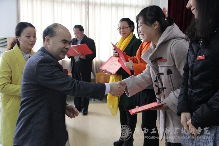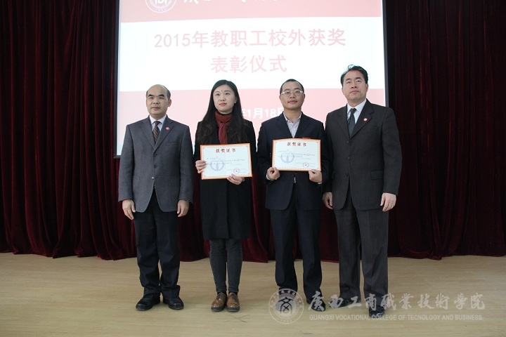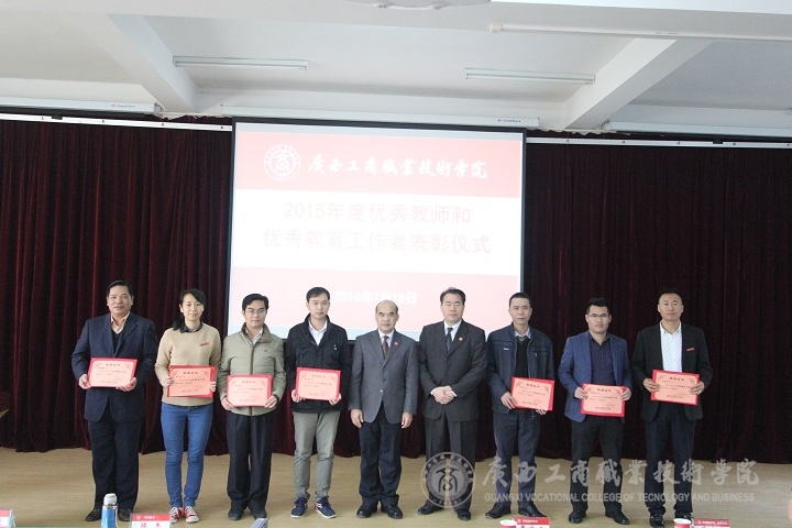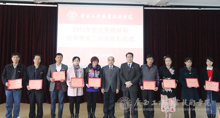 隨后,由學院副院長李仕欽作2015年度優(yōu)秀教師及工作者表彰決定報告。學院黨委書記覃武云和學院院長為受表彰的教師及教育工作者頒發(fā)證書。