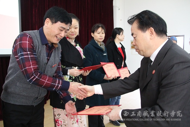 緊接著,李維副院長宣讀我院校外獲獎表彰的決定,并作了我院在校外獲獎的通報。獲獎代表教師上臺領(lǐng)取了證書。