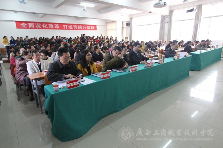 會上,由陳杰院長就學院建立實施校外獲獎備忘錄制度做政策說明,并作2015年度工作報告。陳杰院長在報告中選取八件大事對2015年學院各項工作進行了總結(jié)。一、從作風、組織、措施3個方面總結(jié)了2015年“黨的建設”;二、教學水平升級,主要是人才、培養(yǎng)模式、繼教方面的升級;三、管理能力升級,從依法治校、隊伍建設、數(shù)字化校園等方面進行論述;四、服務環(huán)境升級,從規(guī)范、隊伍、條件三個方面小結(jié)了2015年“三個升級”。五、校園文化的特色文化和系列活動;六、學生管理;七、招生就業(yè);八、民生建設。他還講解了寒假工作安排及2016年工作思路。強調(diào)了要強化校外參賽獲獎意識;強化政策方向;加強團隊意識等重點內(nèi)容。