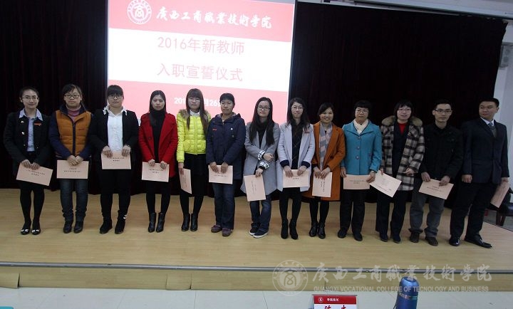 首先,蒙啟成副書記宣讀了2016年春季學(xué)期新教師名單,接著新教師上臺(tái)宣誓,由黨委組織部(人事處)副部長(zhǎng)蔣百平同志進(jìn)行領(lǐng)誓,并合影留念。