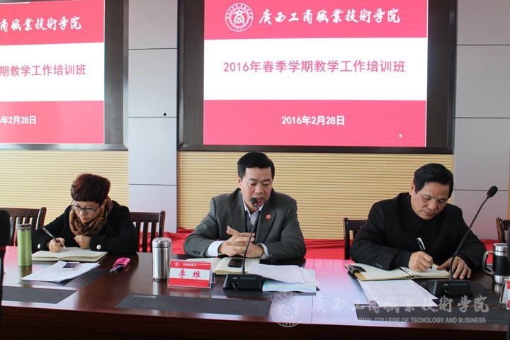 培訓(xùn)班首先由教務(wù)科研處韋勝?gòu)?qiáng)處長(zhǎng)對(duì)2016年度教學(xué)、科研、招生工作進(jìn)行了布置。韋處長(zhǎng)主要從加強(qiáng)服務(wù)社會(huì)能力,突出教學(xué)中心地位,更加規(guī)范教學(xué)管理工作、突出人才培養(yǎng)改革創(chuàng)新,不斷提升教學(xué)質(zhì)量,進(jìn)一步優(yōu)化教師隊(duì)伍結(jié)構(gòu),加強(qiáng)校企合作,深化產(chǎn)教深度融合,加大科研工作力度等方面對(duì)2016年教學(xué)工作目標(biāo)與任務(wù)進(jìn)行了闡述。