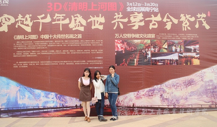 2016年3月20日上午,為了感受中國古典藝術(shù)氣息的熏陶,為了豐富同學們的課余生活,我院新聞中心的同學們自發(fā)組織穿越大半個南寧去到了南寧市五象新區(qū)萬達茂觀看“3D版清明上河圖”,讓我們真真切切的感受到了中國國寶級名畫、十大傳世名畫之首的《清明上河圖》3D巨幅長卷所帶來的震撼。