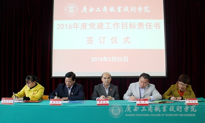 在會(huì)上,簽訂了學(xué)院《2016年度黨建工作目標(biāo)責(zé)任書》和《2016年黨風(fēng)廉政建設(shè)責(zé)任書》。首先是各部門負(fù)責(zé)人與學(xué)院黨委書記覃武云簽訂《2016年度黨建工作目標(biāo)責(zé)任書》。隨后,各部門負(fù)責(zé)人再次與學(xué)院黨委書記覃武云,學(xué)院黨委副書記、院長(zhǎng)陳杰簽訂《2016年黨風(fēng)廉政建設(shè)責(zé)任書》。