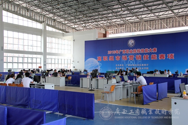 2015年4月25日早上9點(diǎn),廣西職業(yè)院校技能大賽高職組市場(chǎng)營(yíng)銷技能賽項(xiàng)在校本部文體館二樓緊張進(jìn)行。