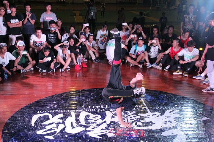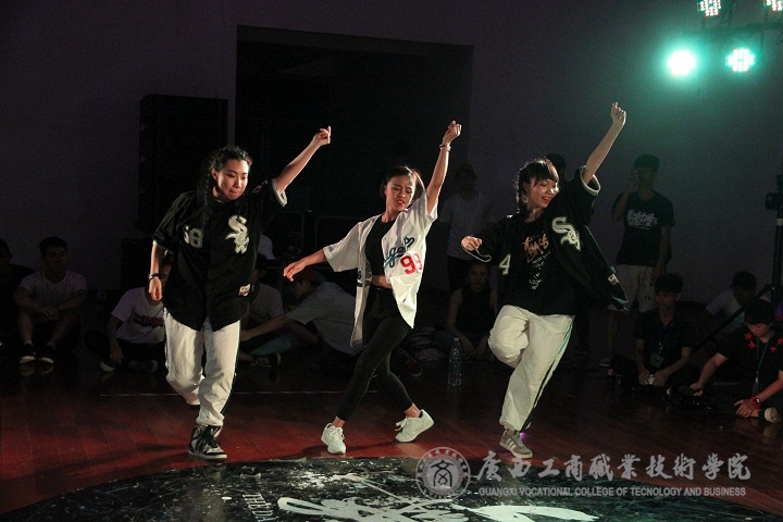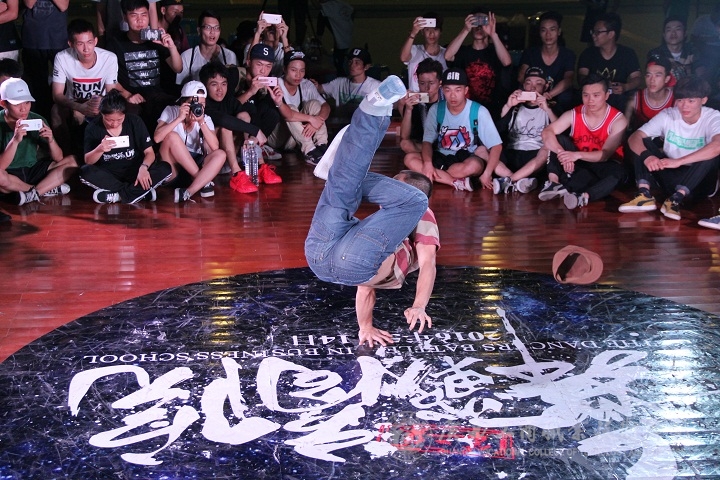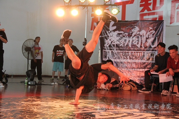 2016年5月14日14:00,我院本部文體館二樓舞臺上下人頭攢動、燈光璀璨,由我院共青團委員會主辦、院街舞社承辦的第二屆“舞戰(zhàn)商院”街舞大賽在此舉行。南寧各大高校街舞社紛紛前來參賽,并與同學們一同欣賞了此次比賽。本次大賽共有五個項目,以斗舞的形式進行,分別為:高校嘉賓賽(7 to smoke)、全部舞種賽(freestyle 3V3)、團體挑戰(zhàn)賽(breaking 5~7)、單人舞步賽(top rock 1V1)、單人技巧賽(power move 1V1)。