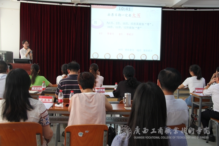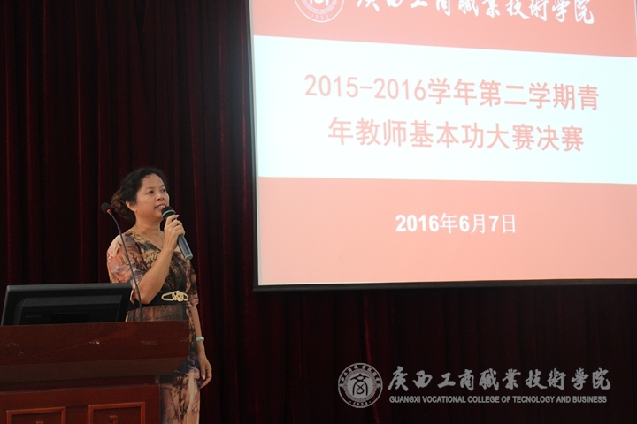 在各系部于5月進(jìn)行的選拔賽基礎(chǔ)上,共有14名教師參加了此次決賽。為了維護(hù)比賽的公平、公正,比賽組委會(huì)特聘請(qǐng)了廣西交通職業(yè)技術(shù)學(xué)院教務(wù)處處長(zhǎng)羅小青教授、廣西電力職業(yè)技術(shù)學(xué)院教務(wù)處處長(zhǎng)張海燕教授、廣西機(jī)電職業(yè)技術(shù)學(xué)院工商管理系主任韋傳亮教授、廣西職業(yè)技術(shù)學(xué)院藝術(shù)系主任劉永福教授、廣西和桂集團(tuán)有限公司人力行政總監(jiān)、國(guó)家高級(jí)人力資源管理師覃最地?fù)?dān)任決賽評(píng)委。