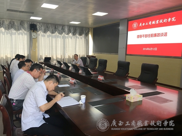 2016年6月12日下午,學(xué)院黨委副書記、紀(jì)委書記蒙啟成同志對(duì)6位新調(diào)整工作崗位的處級(jí)干部做任前廉政談話。會(huì)上,蒙啟成對(duì)6位處級(jí)領(lǐng)導(dǎo)干部提出了四點(diǎn)要求: