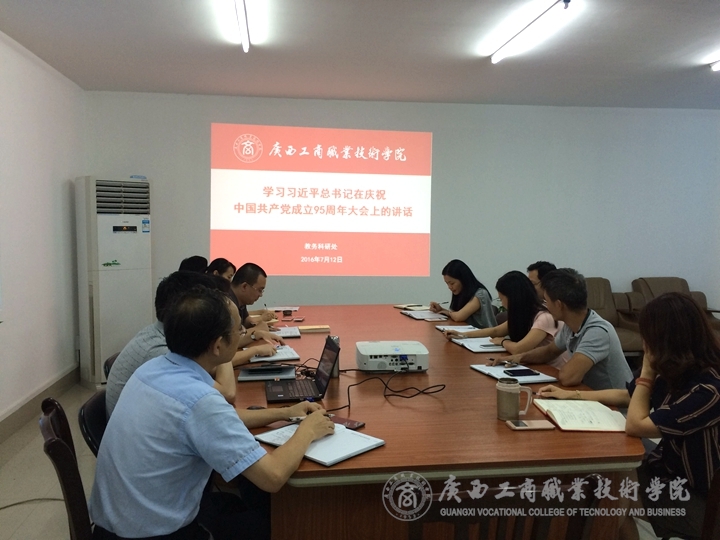 ??????? 與此同時(shí),宣傳部與現(xiàn)教中心黨支部、教務(wù)科研處、財(cái)務(wù)處、會(huì)計(jì)系、經(jīng)管系、財(cái)信系、公共基礎(chǔ)部分別在廣商院2223、學(xué)術(shù)廳、2327、2224、2318、2219等教室和辦公室對(duì)習(xí)總書(shū)記的“七一”重要講話進(jìn)行學(xué)習(xí)探討。其中,在2223教室,韋勝?gòu)?qiáng)部長(zhǎng)圍繞八個(gè)“不忘初心、繼續(xù)前進(jìn)”與與會(huì)黨員同志進(jìn)行交流學(xué)習(xí)。他提出,習(xí)近平總書(shū)記重要講話中談及青年并給予了厚望,表明了黨對(duì)我國(guó)青年的關(guān)心和關(guān)注,這鼓舞著我院青年教師的成長(zhǎng)。在2219教室,公共基礎(chǔ)部張居設(shè)主任圍繞“立足崗位,開(kāi)拓進(jìn)取”,就“三十個(gè)要點(diǎn)”為大家闡述中國(guó)共產(chǎn)黨開(kāi)天辟地的大事件,鼓舞在場(chǎng)的黨員教師們奮發(fā)前行。