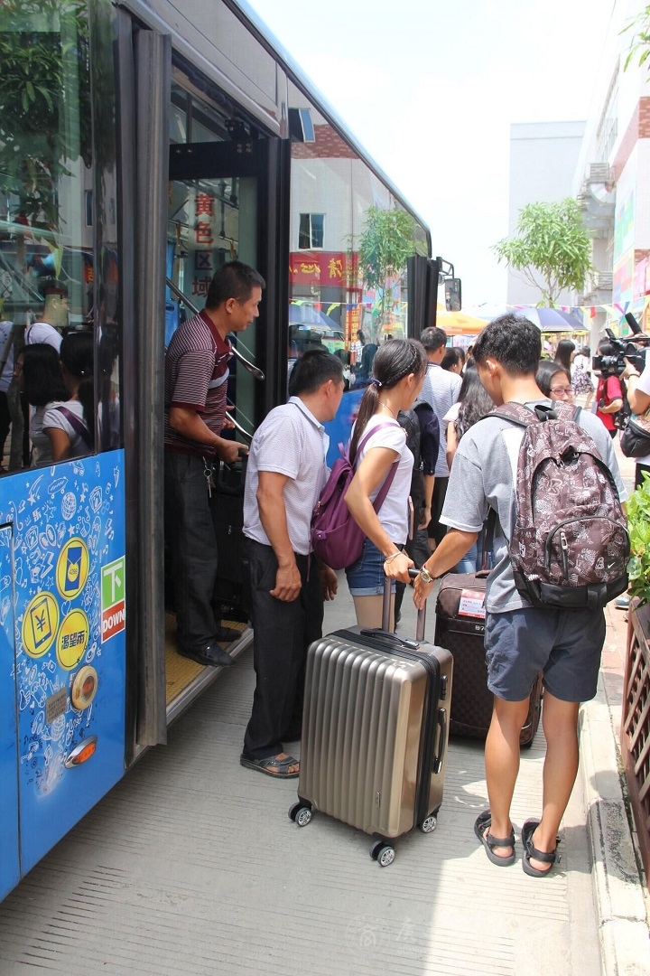 (志愿者送新生上車)