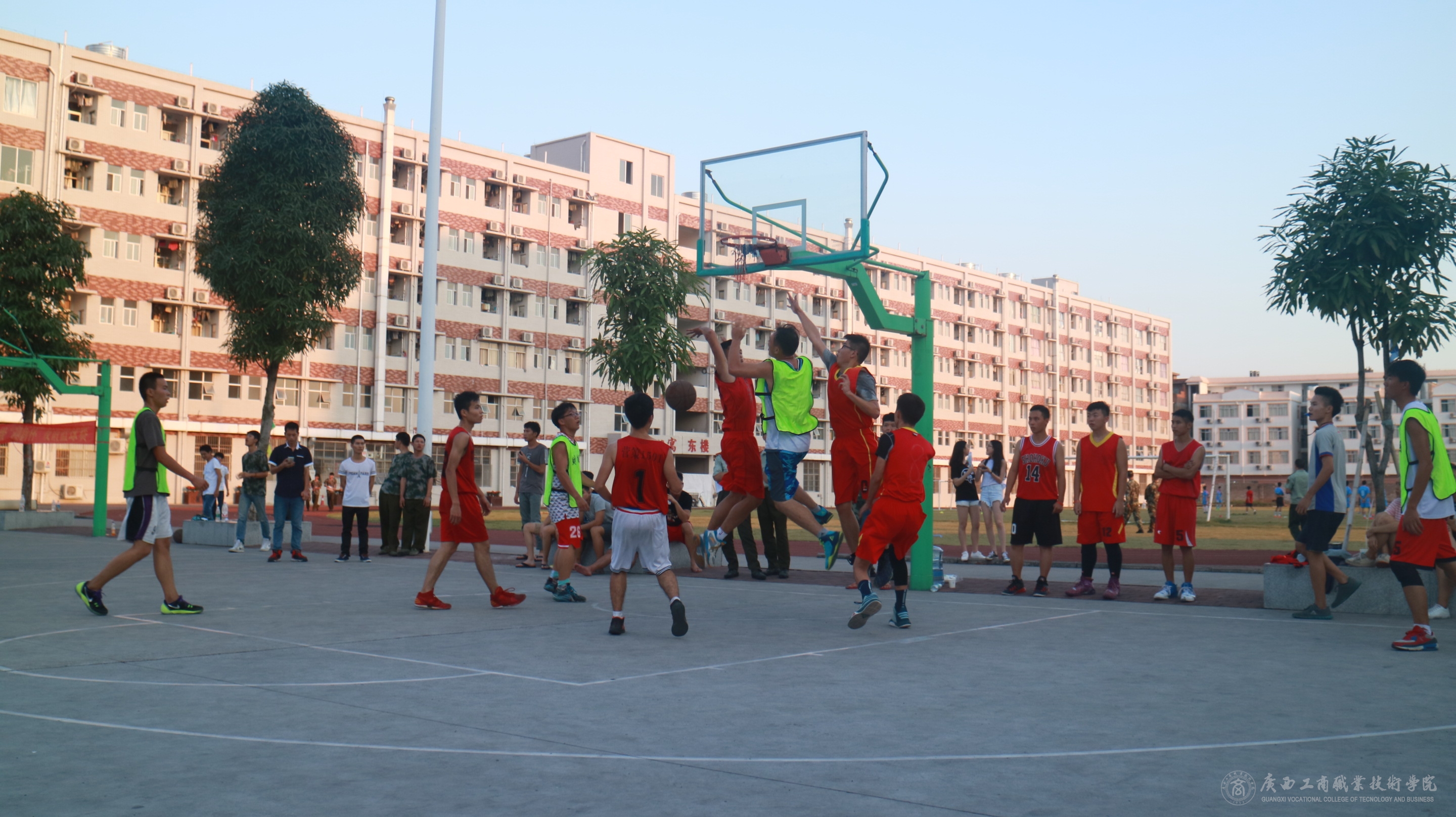 9月28日,廣商院教師代表隊(duì)和武警廣西總隊(duì)直屬支隊(duì)教官代表隊(duì)的友誼賽拉開(kāi)帷幕。學(xué)院黨委副書記、紀(jì)委書記蒙啟成、學(xué)院副院長(zhǎng)李維,武警廣西總隊(duì)直屬支隊(duì)股長(zhǎng)楊支元親臨現(xiàn)場(chǎng),和廣大學(xué)院的籃球愛(ài)好者一同觀看這場(chǎng)精彩的籃球大戰(zhàn)。比賽中,教官代表隊(duì)的隊(duì)員們依靠身體素質(zhì)的優(yōu)勢(shì)迅捷的突破,瞬間將比賽推向高潮,而教師也毫不示弱,用精妙的傳球和極高的投籃命中率還以顏色,每有三分命中或是精彩的助攻上籃,場(chǎng)邊的啦啦隊(duì)都發(fā)出熱烈的歡呼,全場(chǎng)的觀眾的聚精會(huì)神,好似每根神經(jīng)都被牽動(dòng)著……直至比賽結(jié)束的哨聲響起,場(chǎng)邊的粉絲們還意猶未盡。教師、教官代表隊(duì)在球場(chǎng)上積極進(jìn)取、團(tuán)結(jié)拼搏的比賽給在場(chǎng)的學(xué)生們上了精彩的一課,這場(chǎng)球賽的觀眾紛紛表示,這是教室之外的教學(xué)現(xiàn)場(chǎng),是別有意義軍訓(xùn)生活,加強(qiáng)了教官、老師和學(xué)生之間的互動(dòng)交流,對(duì)提高大學(xué)生的身體素質(zhì),增強(qiáng)各系班級(jí)間的凝聚力有著十分積極的意義,展現(xiàn)了廣商院師生的風(fēng)采。