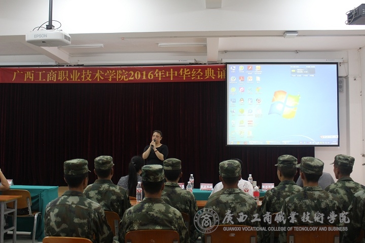“詩(shī)的語(yǔ)言,典藏著五千年悠久的歷史文化;詩(shī)的聲音,演繹著不朽歷史的風(fēng)骨鏗鏘”。2016年9月28日下午,廣商院“中華經(jīng)典誦讀”比賽在院本部2145報(bào)告廳拉開(kāi)帷幕。蒙啟成副書(shū)記親臨現(xiàn)場(chǎng)與各部門(mén)、系部的老師以及受邀到學(xué)院指導(dǎo)軍訓(xùn)的部分教官觀看了本次比賽。