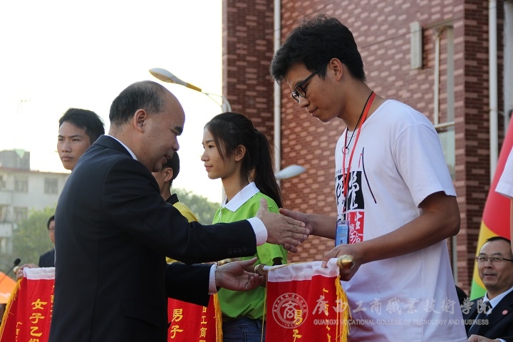 致詞中,陳寧春副院長(zhǎng)還代表學(xué)院向?yàn)楸敬芜\(yùn)動(dòng)會(huì)做出不懈努力的全體師生表示衷心的感謝,向完成了比賽任務(wù)的各參賽團(tuán)隊(duì)與全體運(yùn)動(dòng)員表示熱烈的祝賀。希望大家將賽場(chǎng)上堅(jiān)韌不拔的意志,頑強(qiáng)拼搏的精神,高歌猛進(jìn)的氣概和團(tuán)結(jié)互助作風(fēng)繼續(xù)保持發(fā)揚(yáng)下去,積極投入全民健身運(yùn)動(dòng),經(jīng)常走出寢室,走向操場(chǎng),養(yǎng)成積極體育鍛煉的良好習(xí)慣。不斷提高身體素質(zhì),做到德智體美,全面發(fā)展。最后,他祝全體師生身體健康,工作順利,學(xué)業(yè)有成。祝廣商院事業(yè)發(fā)達(dá),越辦越好。并宣布廣西工商職業(yè)技術(shù)學(xué)院2016年度秋季運(yùn)動(dòng)會(huì)勝利閉幕。