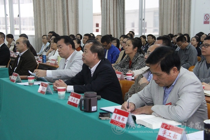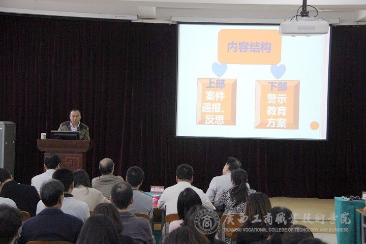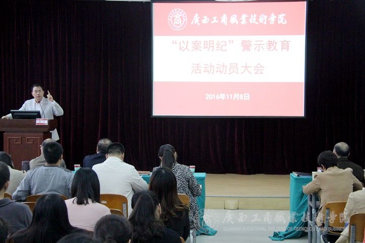 2016年11月8日下午,我院在校本部教學(xué)樓2145報(bào)告廳召開“以案明紀(jì)”警示教育活動(dòng)動(dòng)員大會(huì)。學(xué)院黨委書記覃武云、黨委副書記、院長(zhǎng)陳杰、黨委副書記、紀(jì)委書記蒙啟成、副院長(zhǎng)李仕欽,學(xué)院全體教職工參加了本次動(dòng)員大會(huì)。
