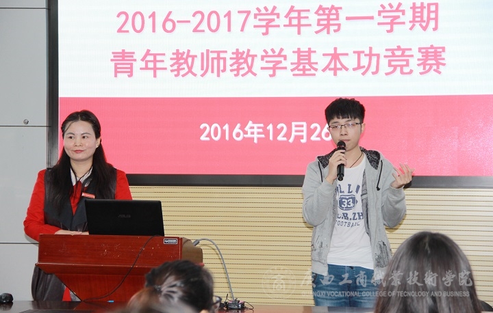為進(jìn)一步提高青年教師教學(xué)基本技能,促進(jìn)青年教師樹(shù)立高職教育理念,磨練教學(xué)內(nèi)功,營(yíng)造重視教學(xué)、追求卓越的氛圍,2016年12月26日下午,學(xué)院2016-2017學(xué)年第一學(xué)期青年教師教學(xué)基本功決賽在校本部教學(xué)樓2119視頻會(huì)議室隆重舉行。