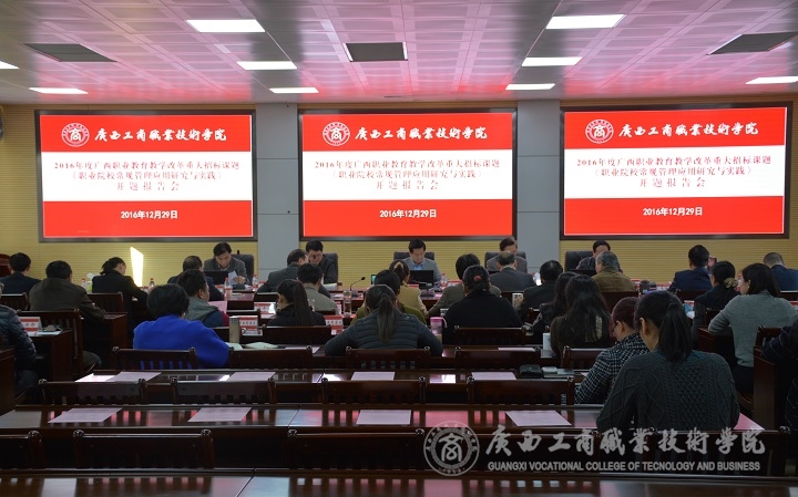 2016年12月29日下午,我院召開2016年度廣西職業(yè)教育教學(xué)改革重大招標(biāo)課題開題評議報告會,由學(xué)院院長、首席專家陳杰教授主持的“職業(yè)院校常規(guī)管理應(yīng)用研究與實(shí)踐”課題順利通過開題論證。