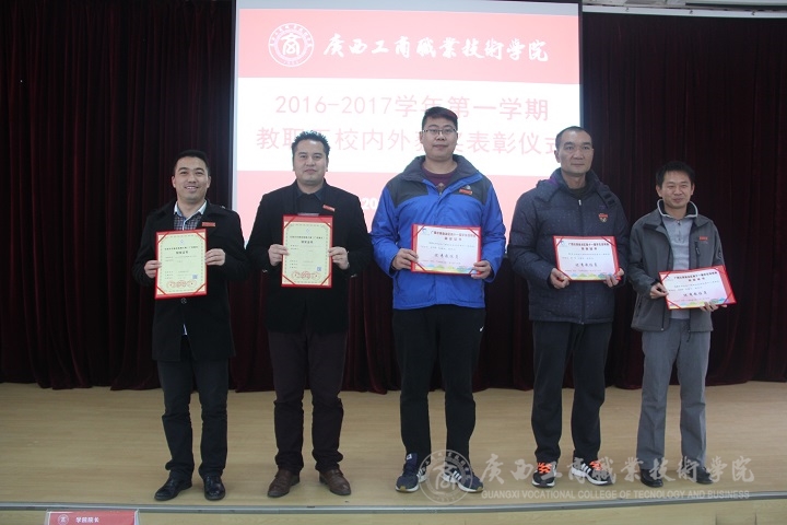 會(huì)上,覃武云書記、陳杰院長為獲得自治區(qū)就業(yè)創(chuàng)業(yè)工作突出單位、學(xué)生自治區(qū)區(qū)內(nèi)外比賽優(yōu)秀指導(dǎo)教師代表頒獎(jiǎng);蒙啟成副書記、李仕欽副院長為體育項(xiàng)目獲獎(jiǎng)代表教師頒獎(jiǎng);黃永蓬副廳級調(diào)研員、陳寧春副院長、為獲得自治區(qū)教師參賽獲獎(jiǎng)的代表教師頒獎(jiǎng)。
