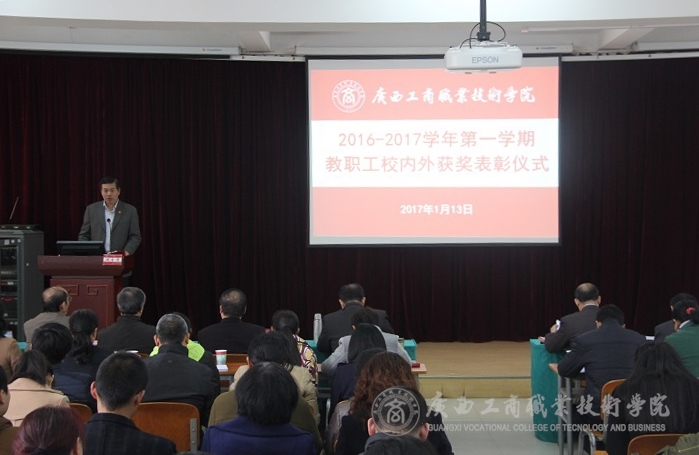 2017年1月13日下午,我院在校本部召開2016-2017學(xué)年第一學(xué)期教職工校內(nèi)外獲獎(jiǎng)表彰儀式。參加會(huì)議的有學(xué)院領(lǐng)導(dǎo)班子及全體教職工。會(huì)議由李維副院長主持。
