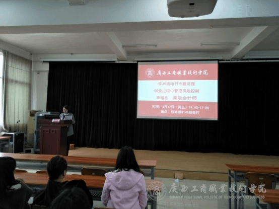 2017年3月17日下午,我院在報(bào)告廳舉辦了一場主題為“創(chuàng)業(yè)過程中的管理風(fēng)險(xiǎn)及控制”的學(xué)術(shù)講座。主講嘉賓為廣西百興交通建設(shè)有限公司、南寧市利和小額貸款有限公司的董事長兼總經(jīng)理、黨總支書記、高級會計(jì)師李紹忠,講座由會計(jì)系黃蘭君老師主持,部分2016級學(xué)生參加了此次講座。